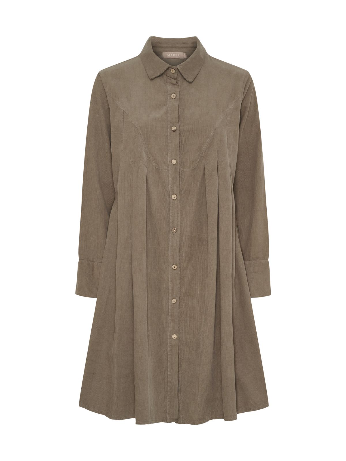 Smuk fløjlskjole fra Marta Du Chateau. Kjolen har knaplukning langs fronten, krave og lange ærmer. Perfekt til nylonstrømper og en støvle.Pasform: Regulær pasform