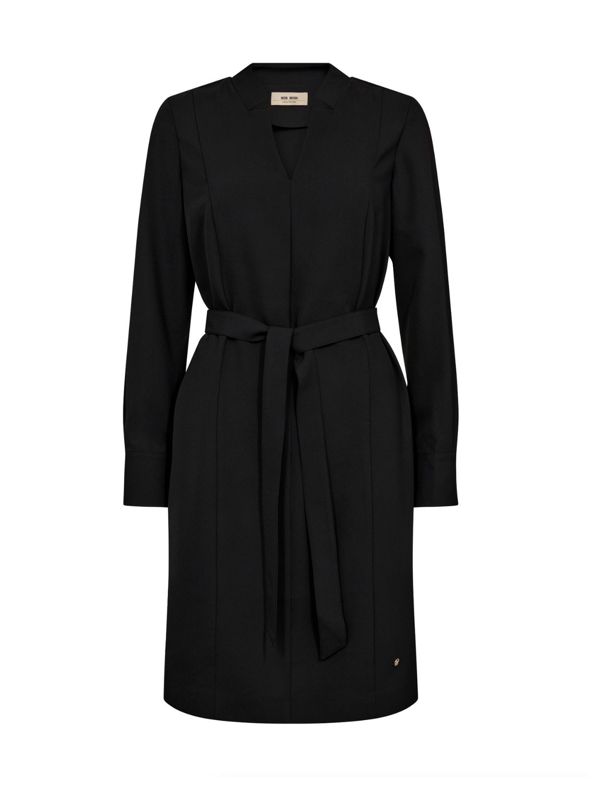 Feminin kjole fra Mos Mosh. Kjolen har en V-udskæring, lange ærmer og bindebånd i taljen. Perfekt til en aften i byen.Materiale: 100% Polyester