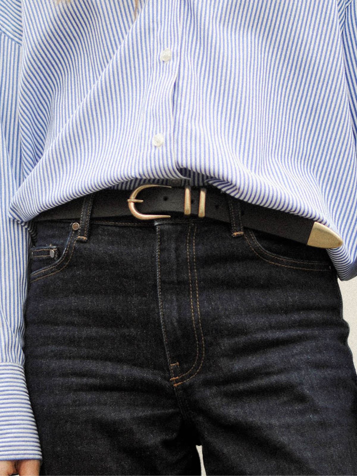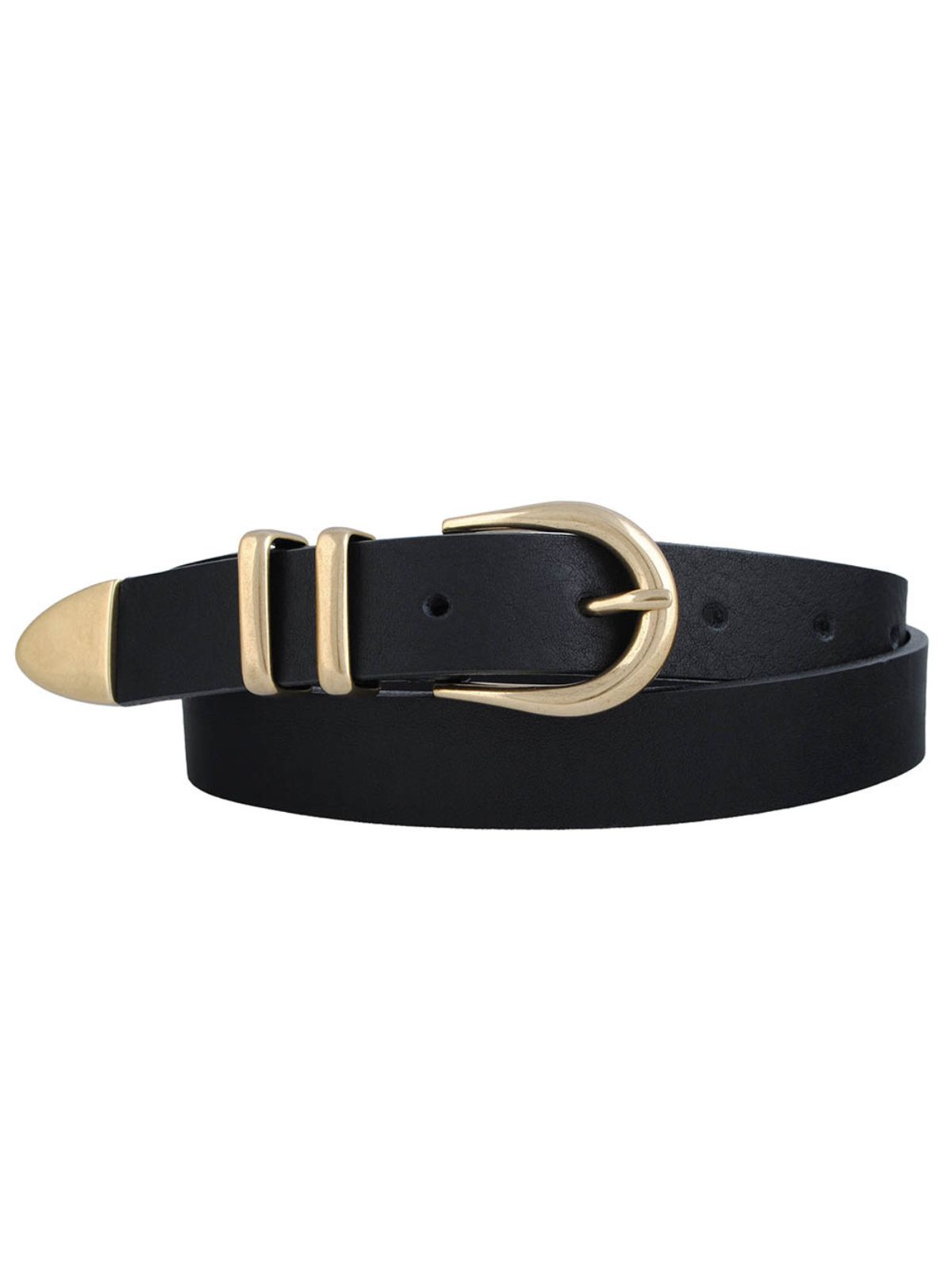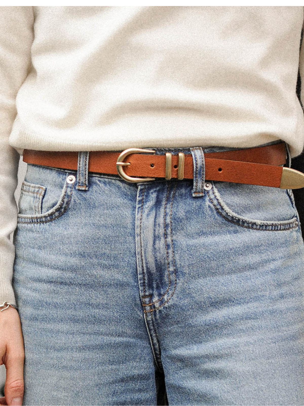 Råt western damebælte fra Boswikk med metal spids og metal sløjfeRemmen er lavet af ét kraftigt lag narvlæder, som er oversiden af koens hud, hvor hårene har siddet. Det er den lækreste og mest slidstærke del af læderet. Læderet er vegetabilsk garvet i Italien – en gammel traditionsrig proces der udvinder garveekstrakter fra naturlige ting som mos, kastanjer og bark fremfor kemi og tungmetaller.