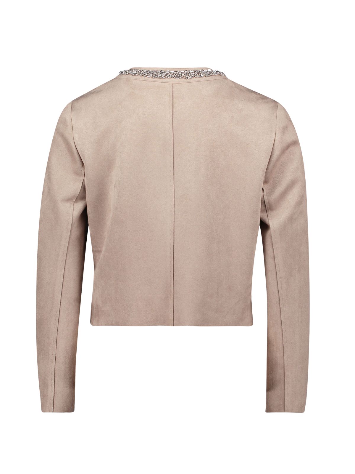 Grå blazer med rund hals, lange ærmer og skjult lukning. Blazeren har patchlommer og et enkelt, tidløst design i blød suedekvalitet.