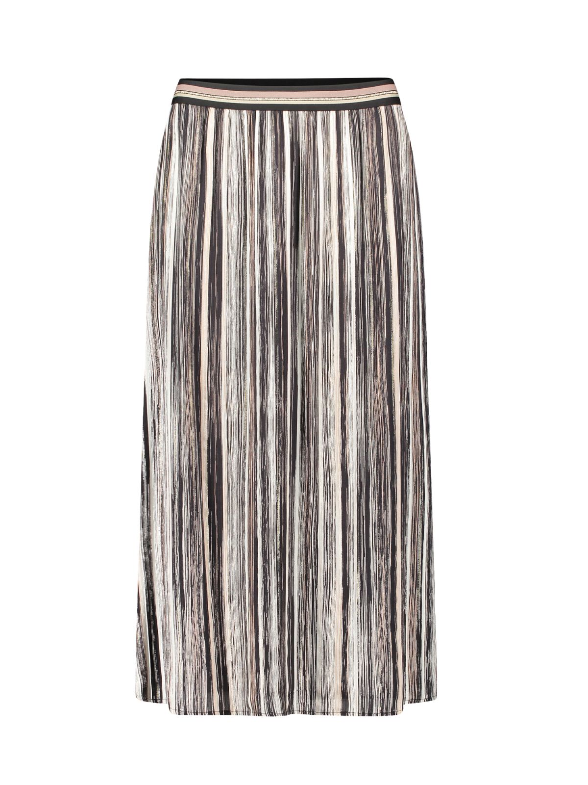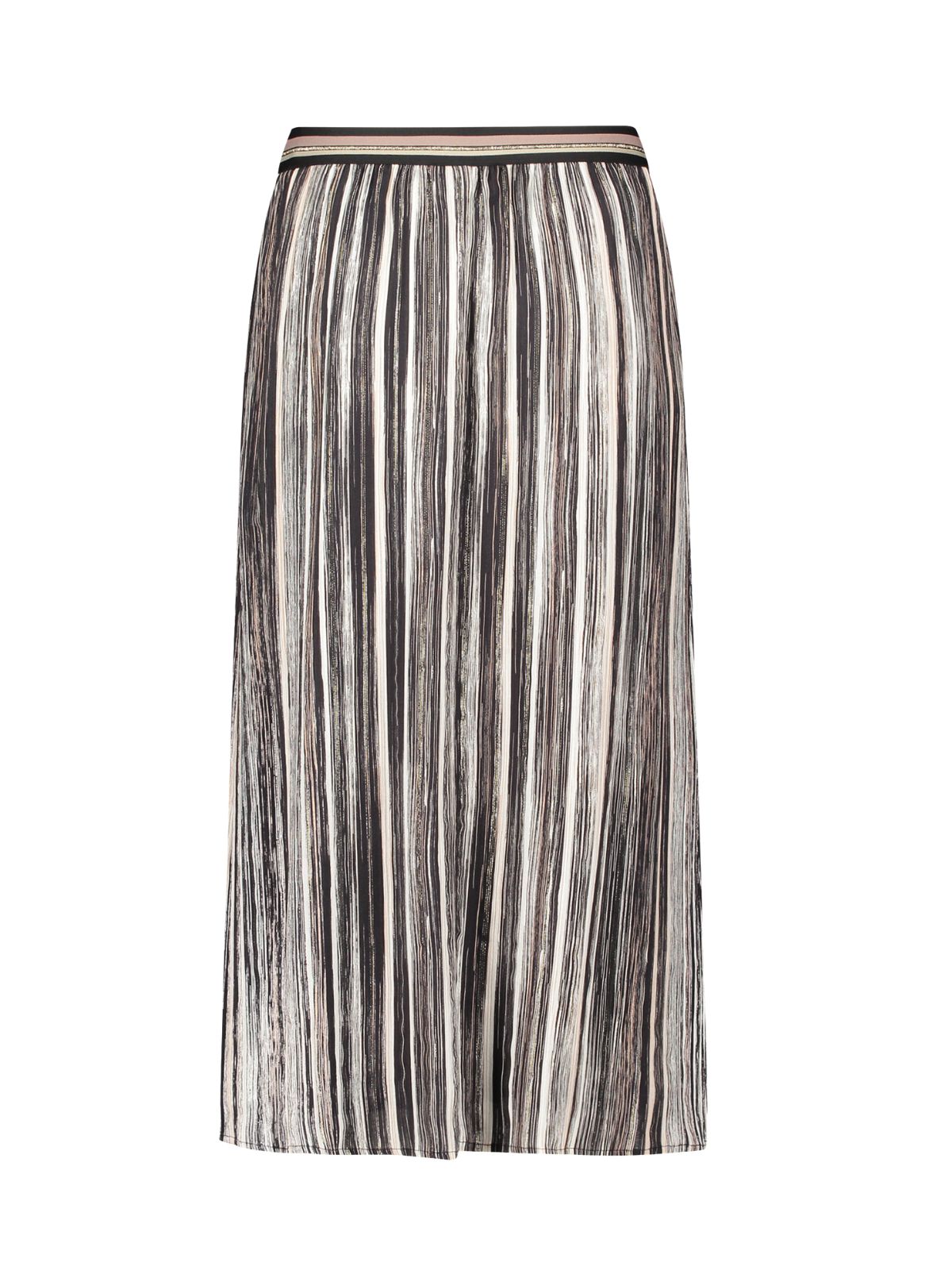 Midi-nederdel med vidde i sort med stribet mønster. Nederdelen har elastik i taljen og er foret i 100% polyester for komfort og flot fald.