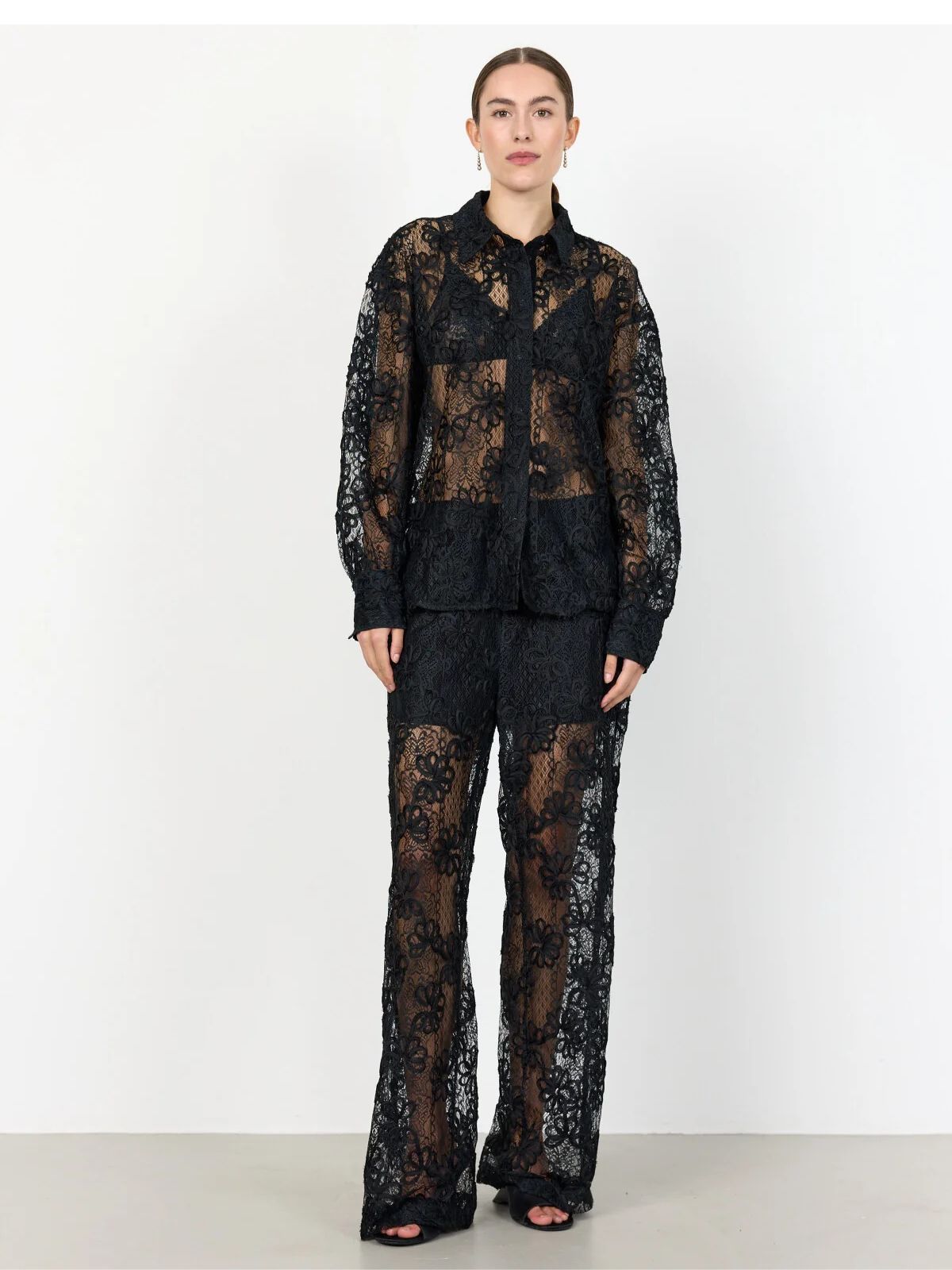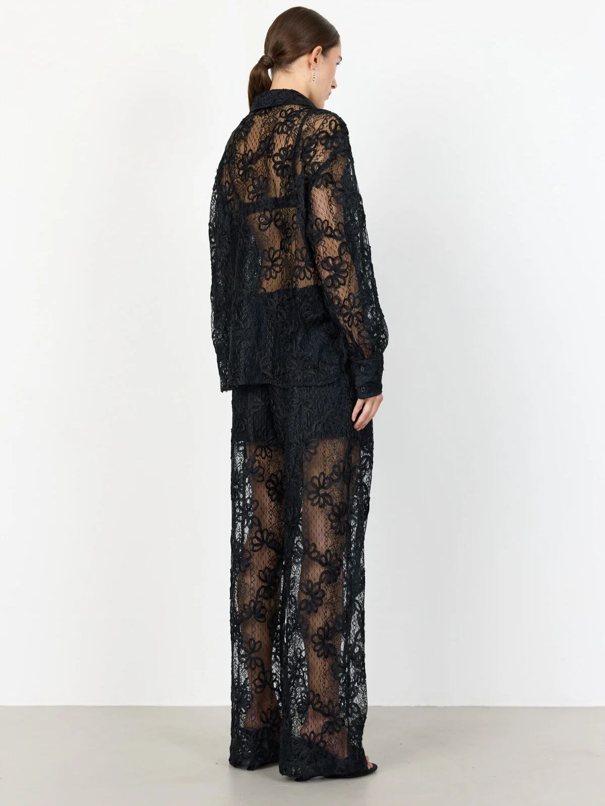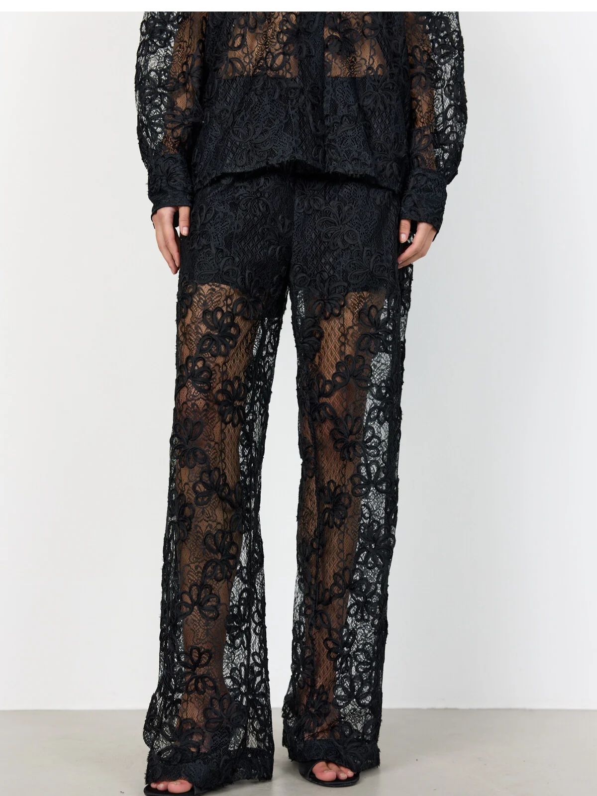 Smarte blonde bukser fra LEVETÈ ROOM i et elegant blondeoverlæg med en behagelig elastisk linning og et design, der går hele vejen. Kombiner dem med en simpel top og slanke hæle for et unikt look-Indvendig Benlængde: 78 cm