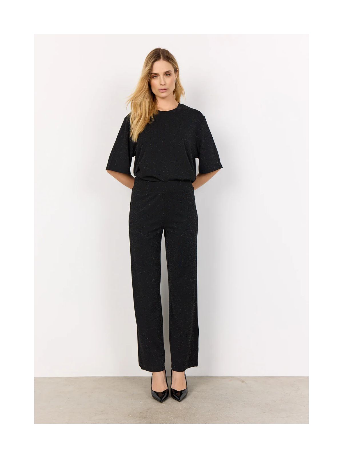 Elegante bukser med lige ben, linningdetalje og subtilt glimmer i stoffet. Perfekte sammen med en elegant bluse eller afslappet top for et stilfuldt look.
