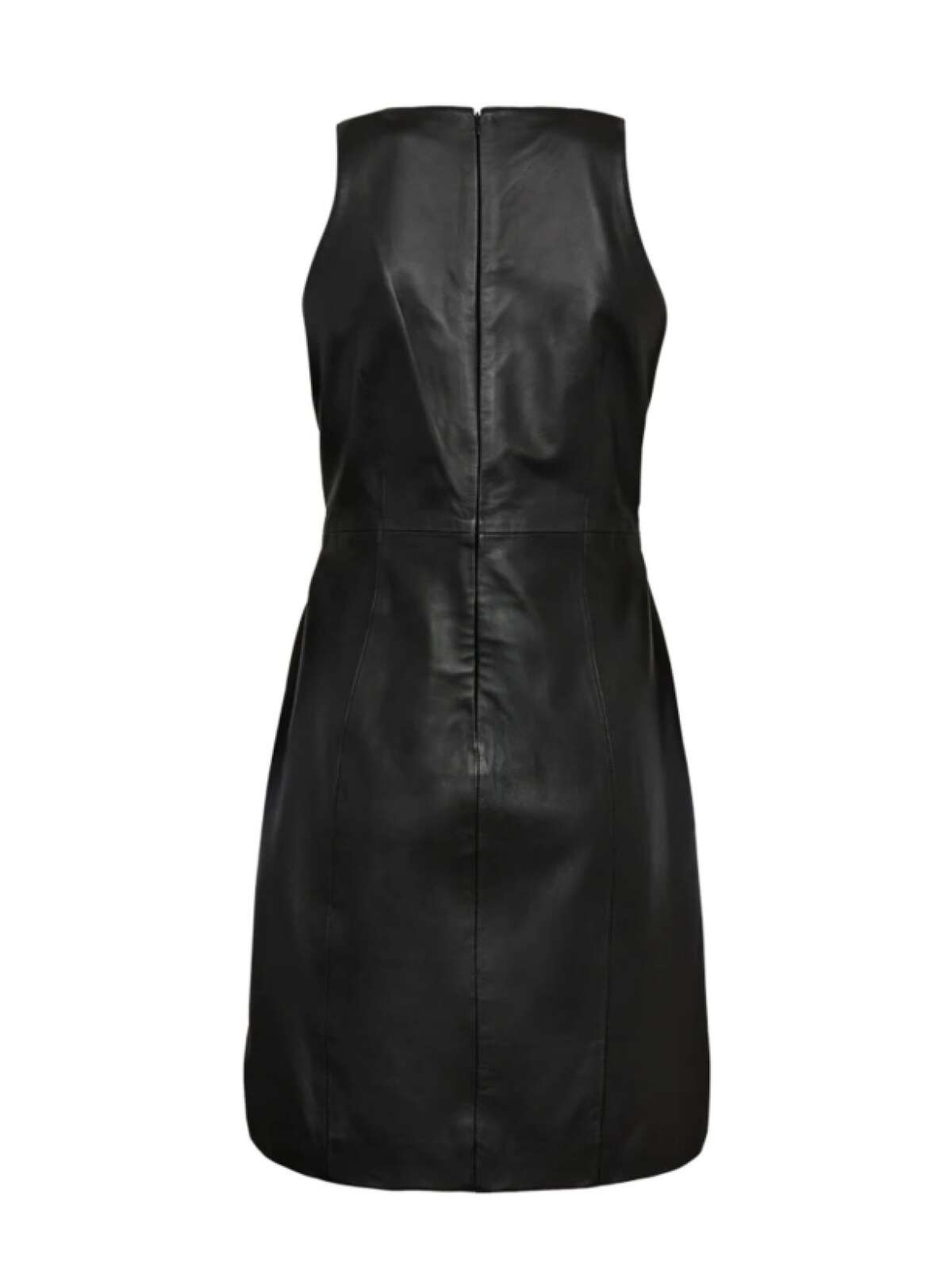 Elegant style med rund hals og skjult lynlåslukning på ryggen, fremstillet i blødt lammeskind og foret for ekstra komfort. Smal pasform skaber en tidløs og flatterende silhuet.