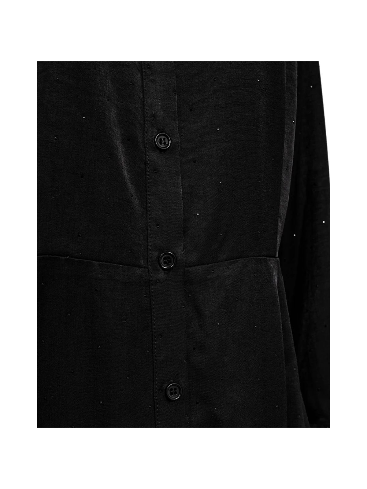 Kjole fra Freequent i en blød kvalitet pyntet med små similisten, der giver et elegant og feminint udtryk. Modellen har knaplukning på fronten, lange ærmer med manchetter, sidelommer samt en markeret talje og et let A-formet skørt, der skaber en smuk og flatterende silhuet.Materiale: 70% Viskose, 30% Polyester
