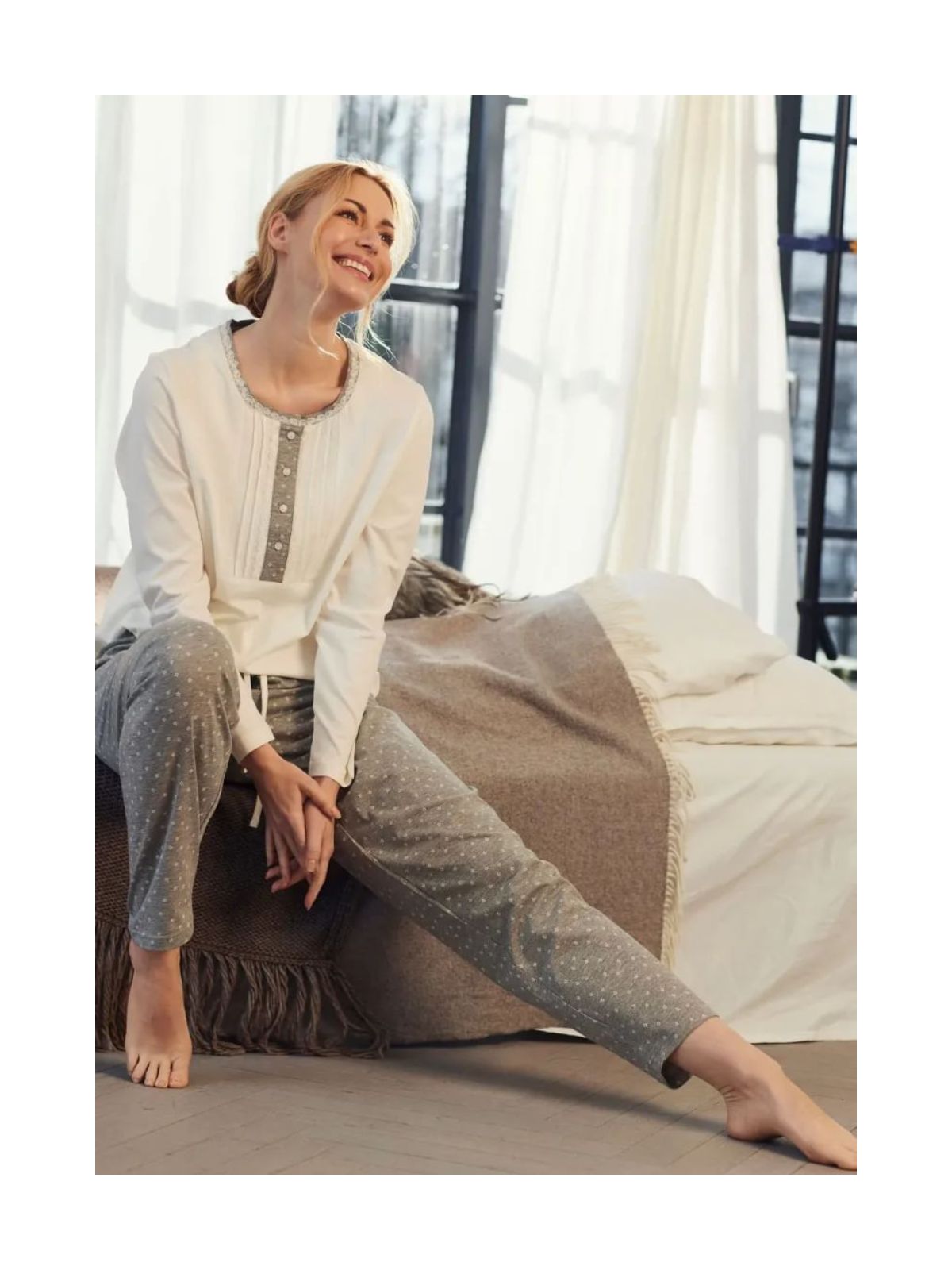 Komfort pyjamas fra BRANDTEX i feminint design med ensfarvet bluse med detaljer samt grå buks med stjerner.Farve: 2121 GRÅ