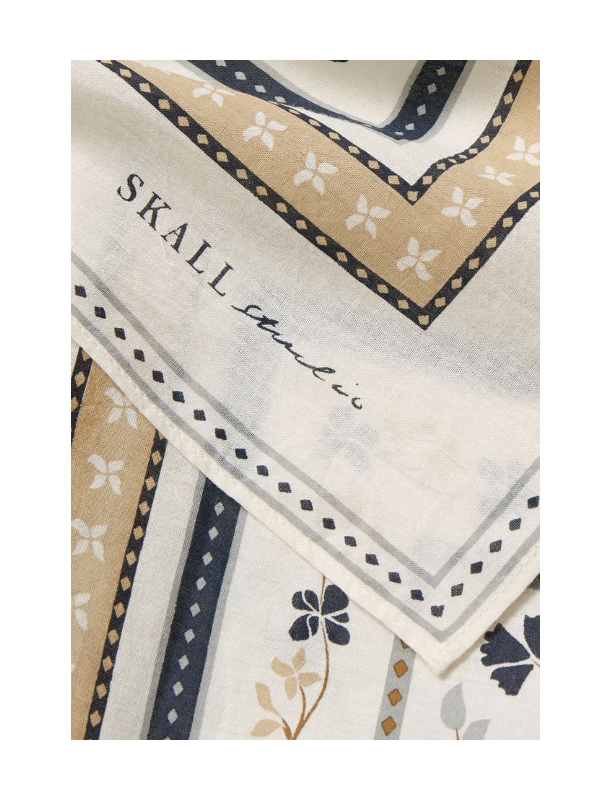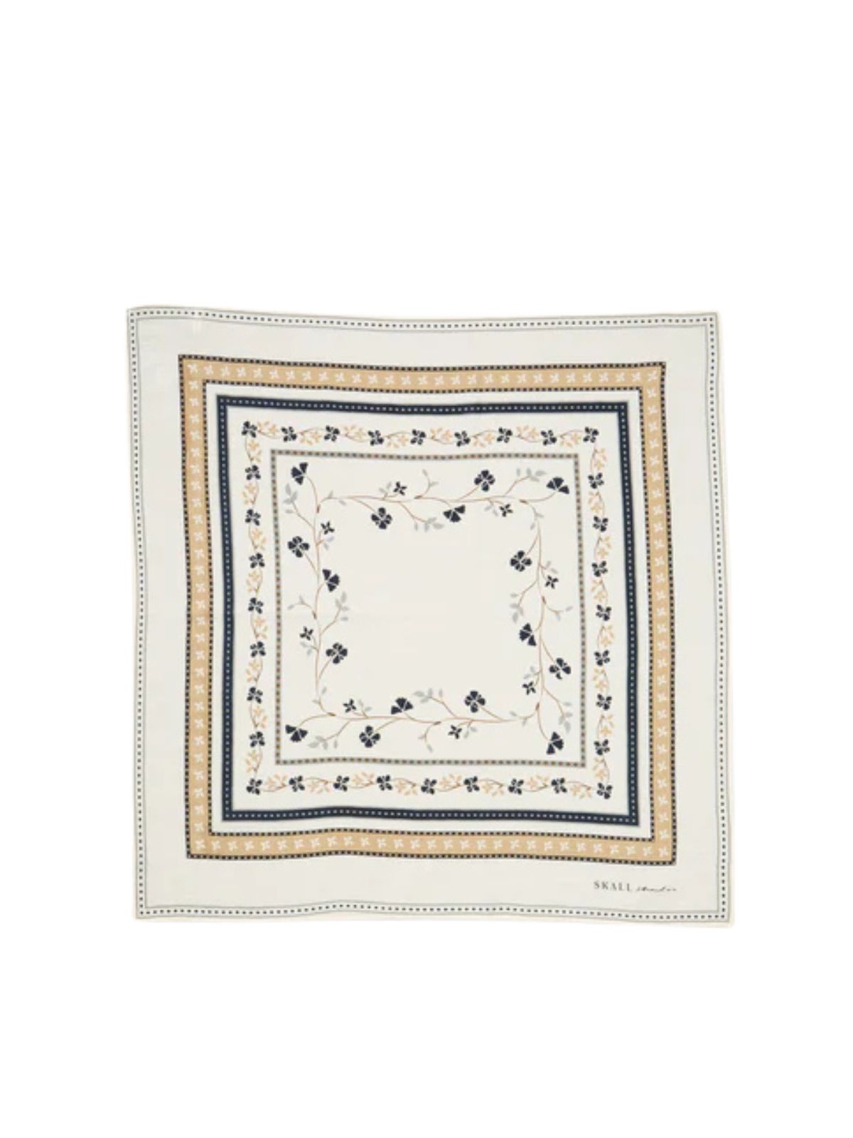 Floral Scarf fra SKALL er et lille bandage i 100% bomuld med et mønster af fine blomster indrammet af en kvadratisk bort. Det er den perfekte afslutning på et outfit, når det bindes om halsen.Mål: 55 cm X 55 cm