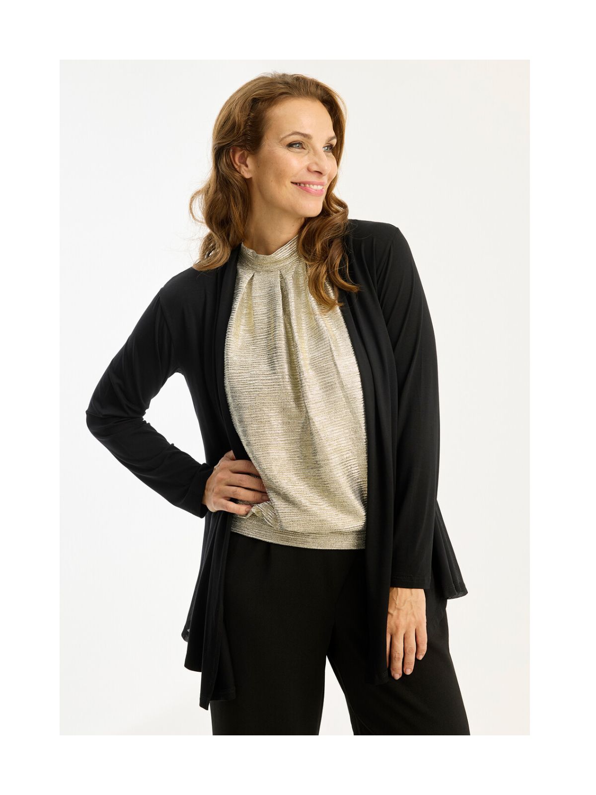 Cardigan med lange ærmer i tyndt materiale og mesh-detalje på ryggen. Et let og stilfuldt lag til både hverdag og festlige lejligheder.