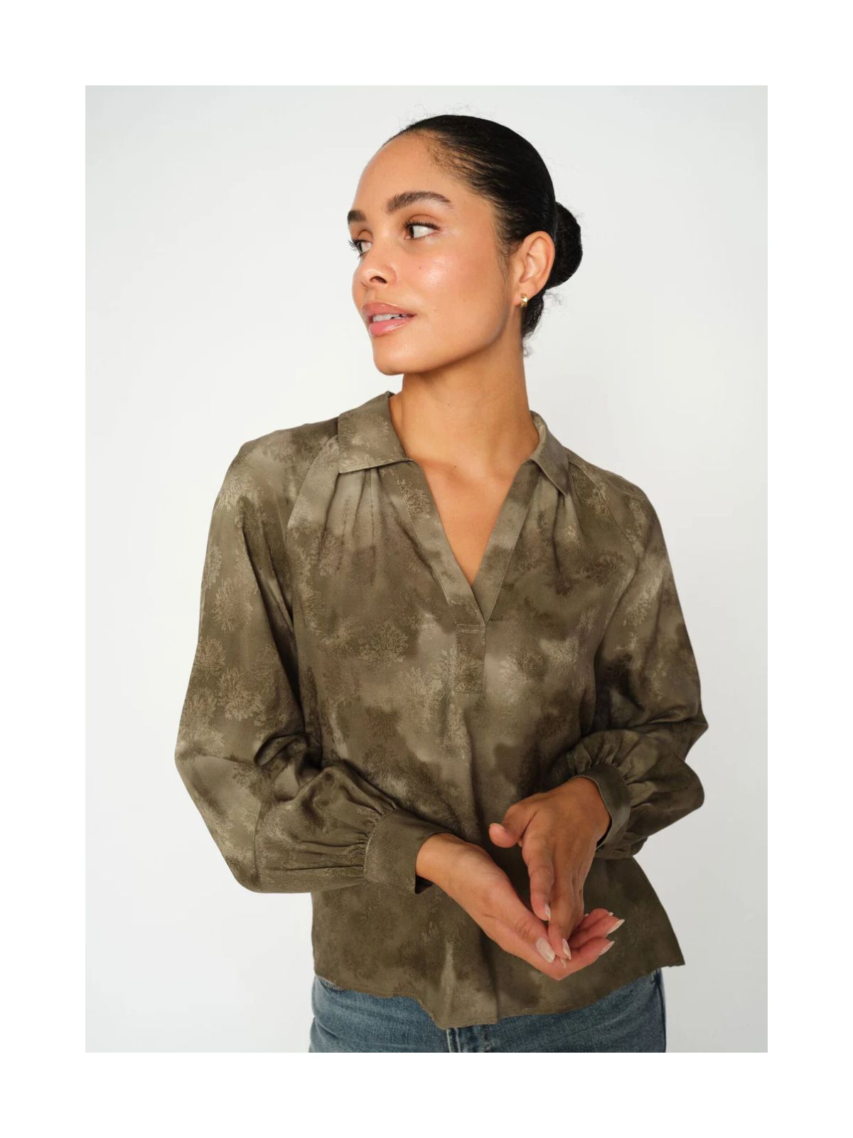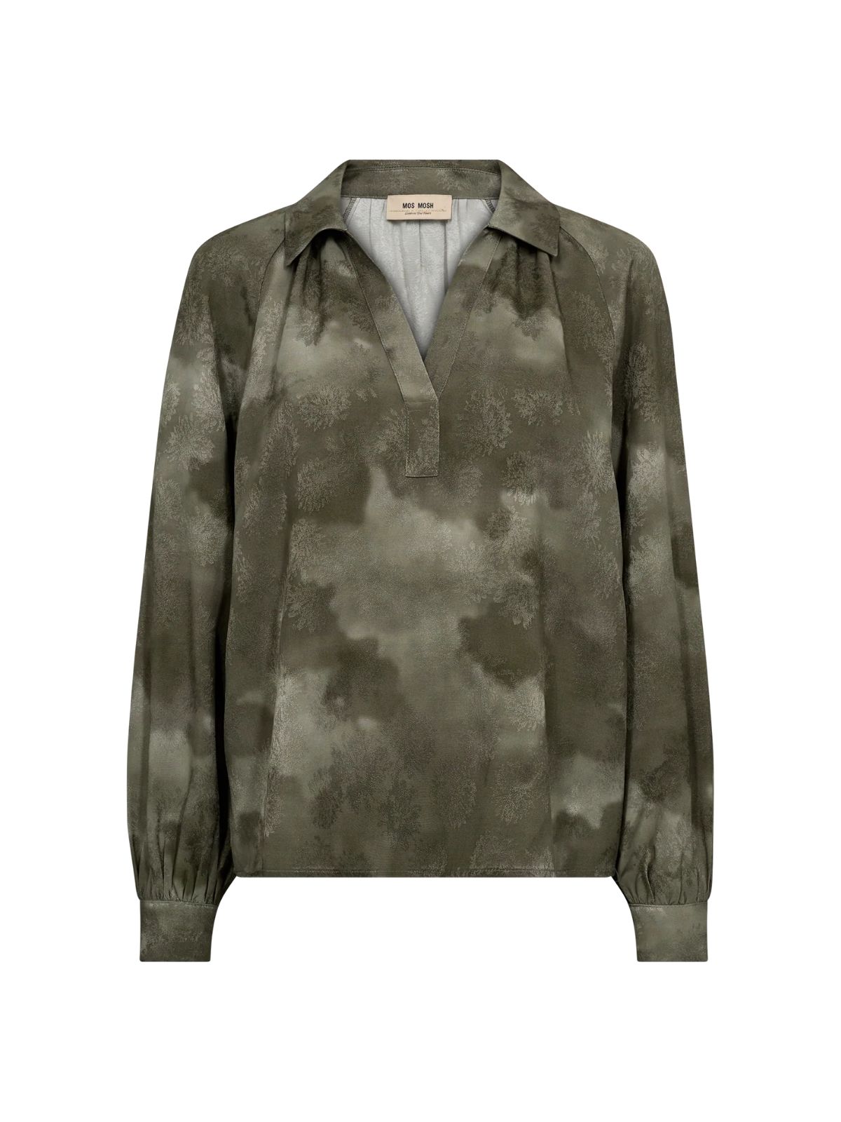 Feminin bluse fra Mos Mosh i et diskret camouflage-mønster, som giver et raffineret twist til et casual design. Blusen har V-hals og lange ærmer som giver den et alsidigt og ubesværet udtryk, mens det glatte, lette materiale sikrer komfort og åndbarhed. Style den med skræddersyede bukser eller denim for et moderne og poleret look.Længde: ca. 60 cm