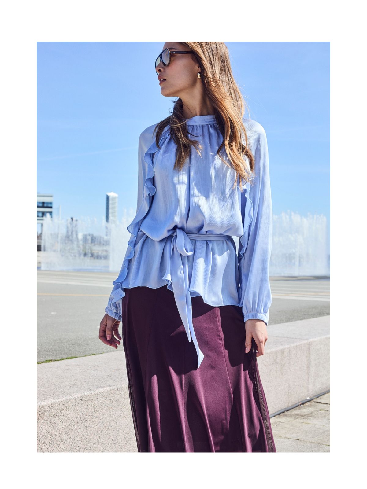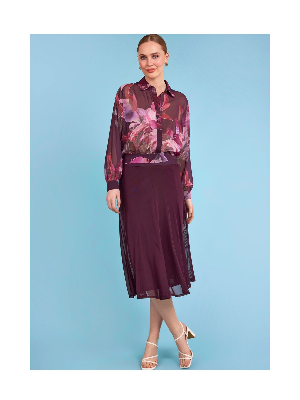 Elegant nederdel fra Molly Jo i smart design med elastisk talje samt i flatterende let transparent dessin i flere farver. Nederdel har en god længde til lige under knæet.Længde: ca. 74 cm
