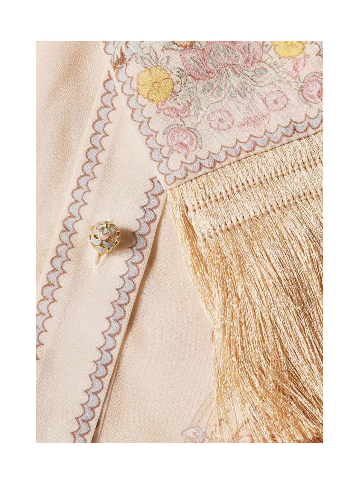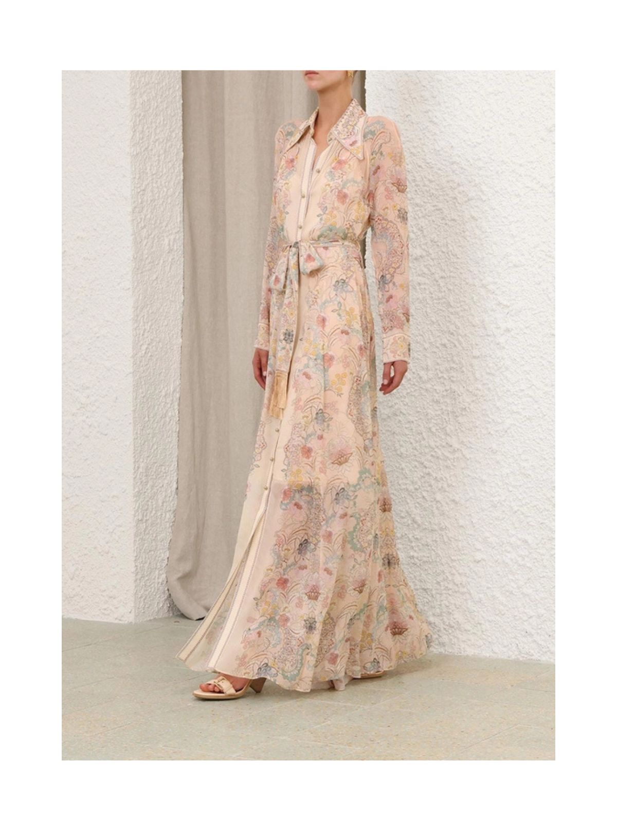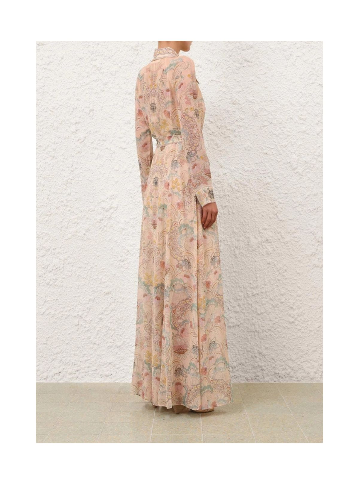 Eksklusiv Rebellion Pussybow kjolen fra ZIMMERMANN i pink blomsterprint i Twisted Romance. Kjolen er en langærmet maxikjole med en klassisk krave med pussybow-udskæring med lange flipper og smukke knapper ned langs midten foran. Kjolen har et løst bindebælte med fine guld frynser samt tilhørende underkjole.Pasform: Løs siddende