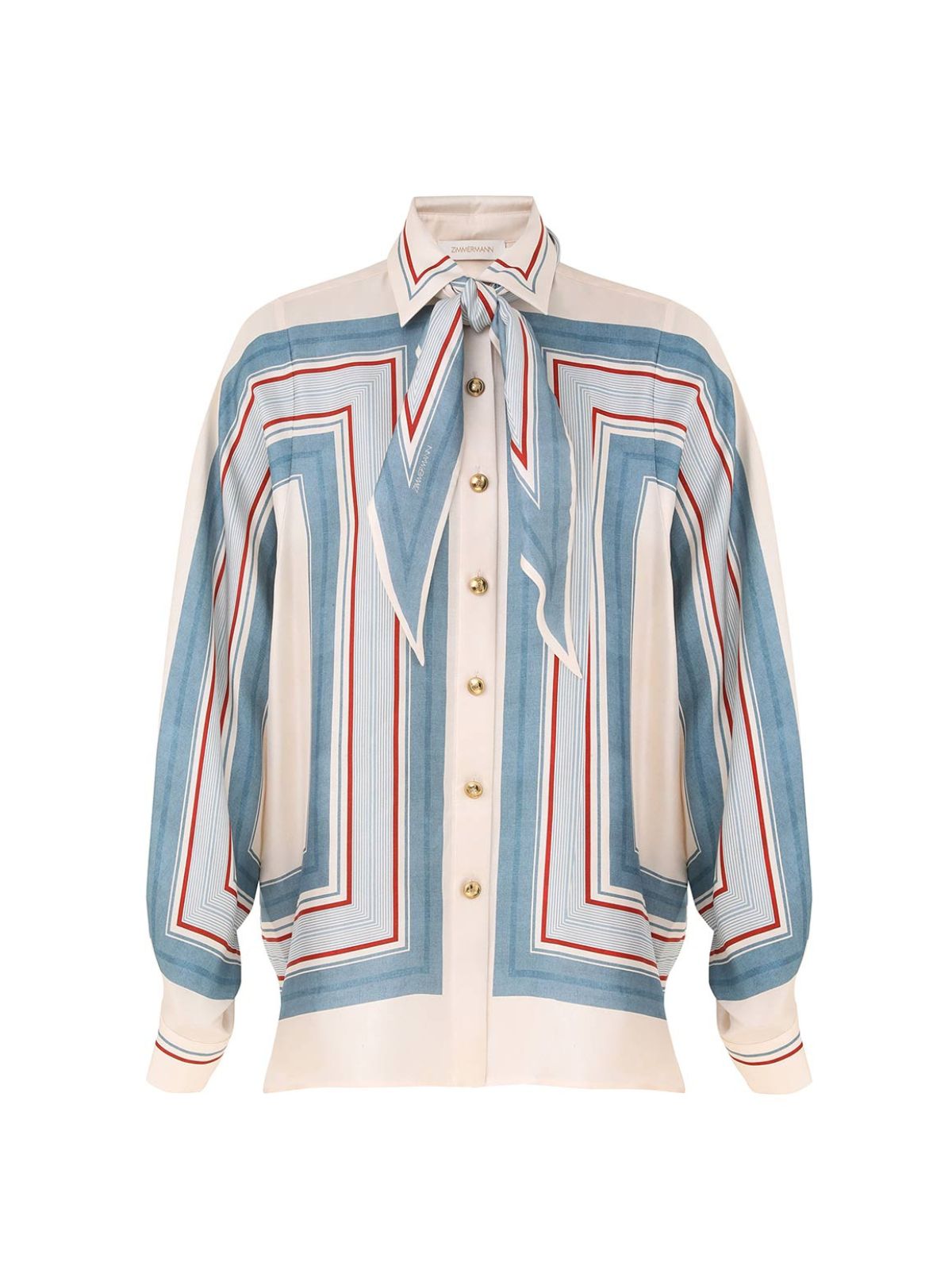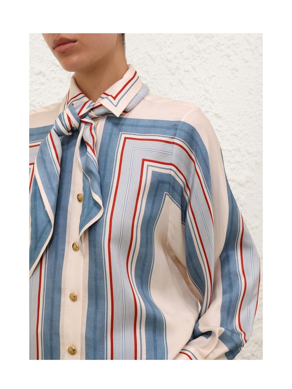 Sofistikret silke skjorte bluse fra ZIMMERMANN i relaxed design med tørklæde i Ticking Stripe mønster. Silkeskjorten her en klassisk krave, lange ærmer med manchet og knapper midt foran.Pasform: Relaxed