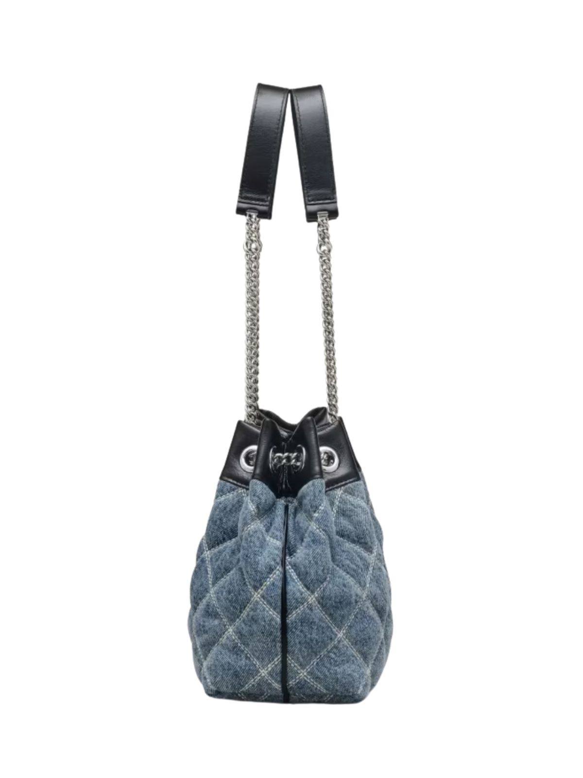 Marc Jacobs Sage taske i blød denim, designet til både hverdag og fritid. Tasken har en rummelig form, ideel til opbevaring af alle dine nødvendigheder, og kan styles som crossbody eller skuldertaske.Materiale: 100% Bomuld
