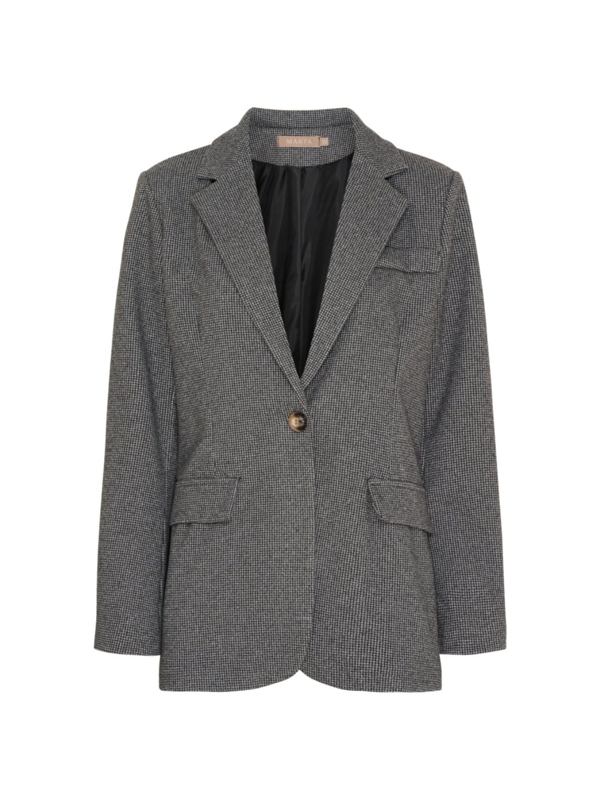 Smart pipita ternet blazer jakke fra Marta DU Chateau i klassisk design med krave og revers i let oversixed style med stiklommer samt een knap foran.Længde: ca. 75 - 80 cm