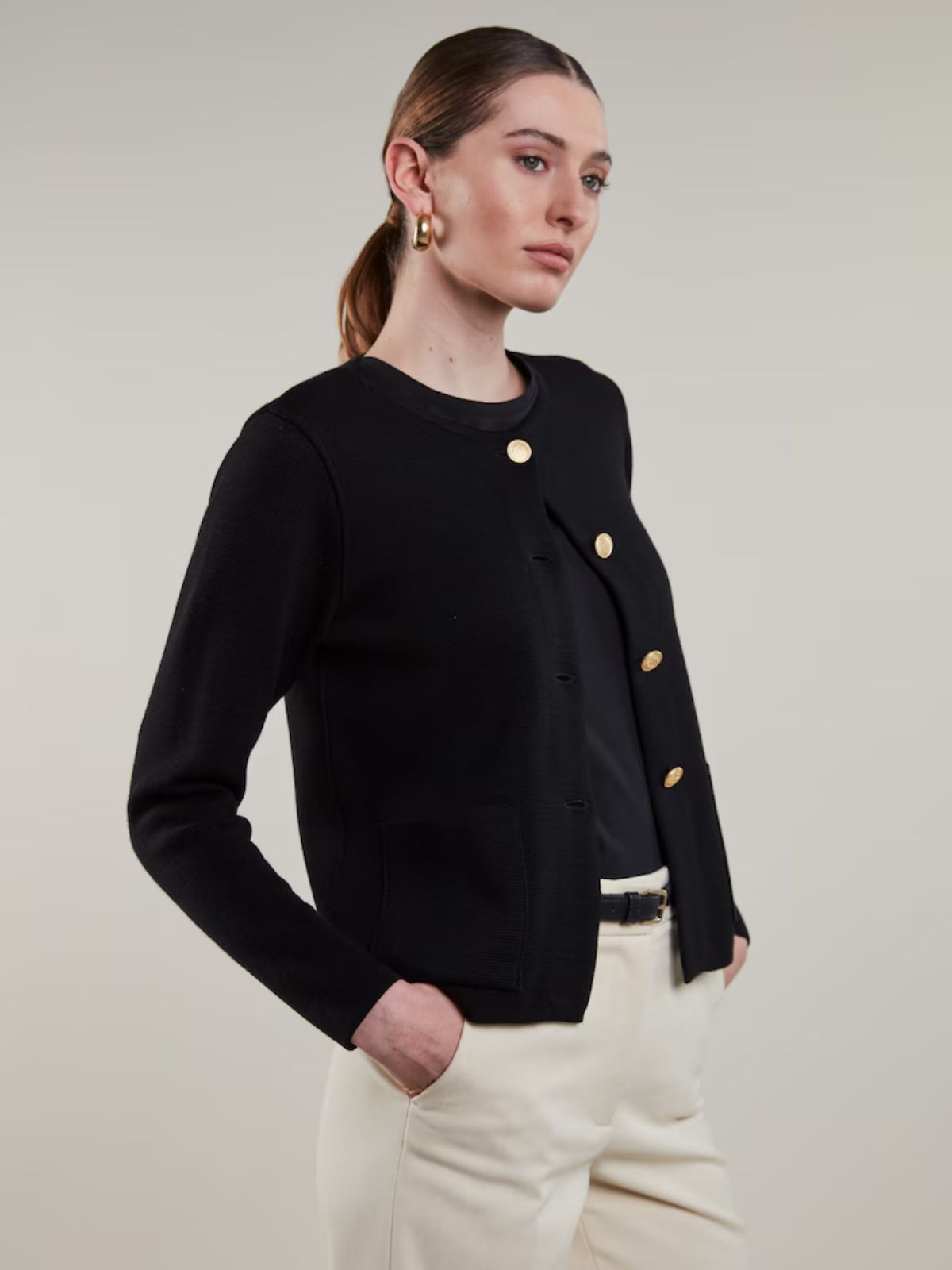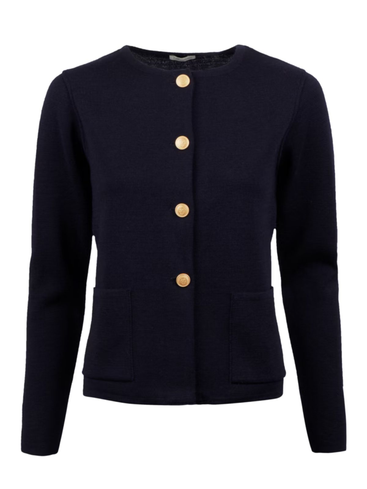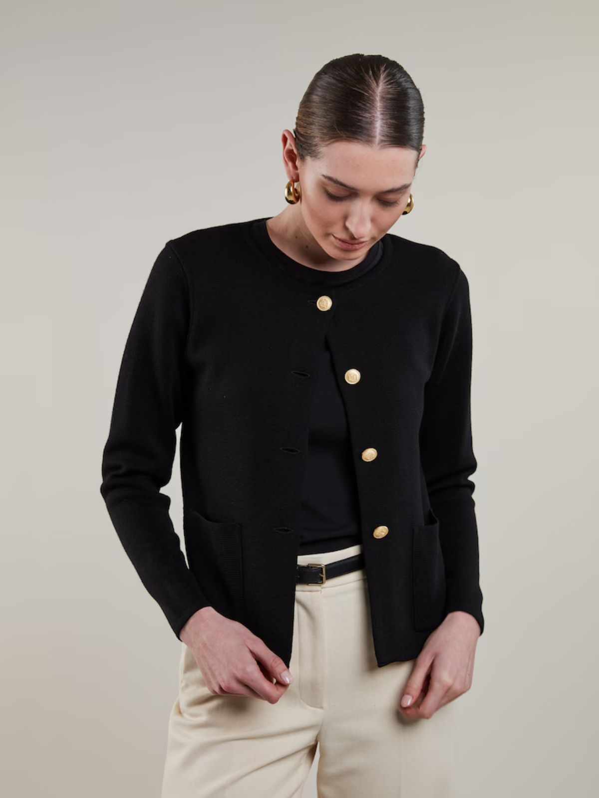 Eksklusiv cardigan fra Stenstrøms. Cardiganen har et tidsløst design, rund halsudskæring, lommer på fronten og flotte gyldne knapper.Pasform: Regulær pasform