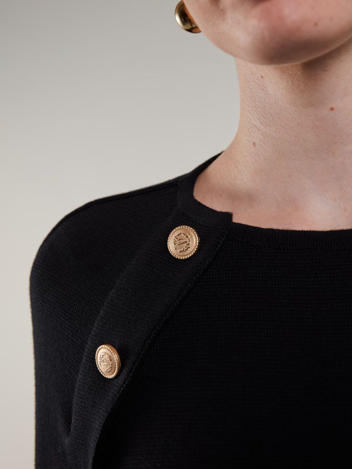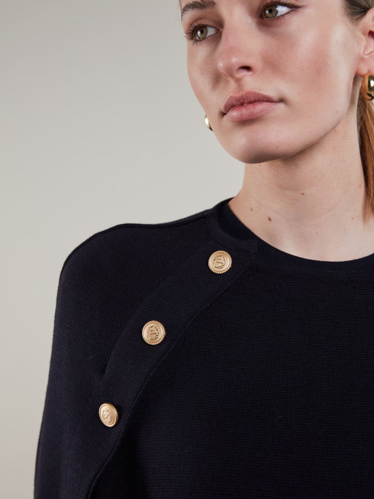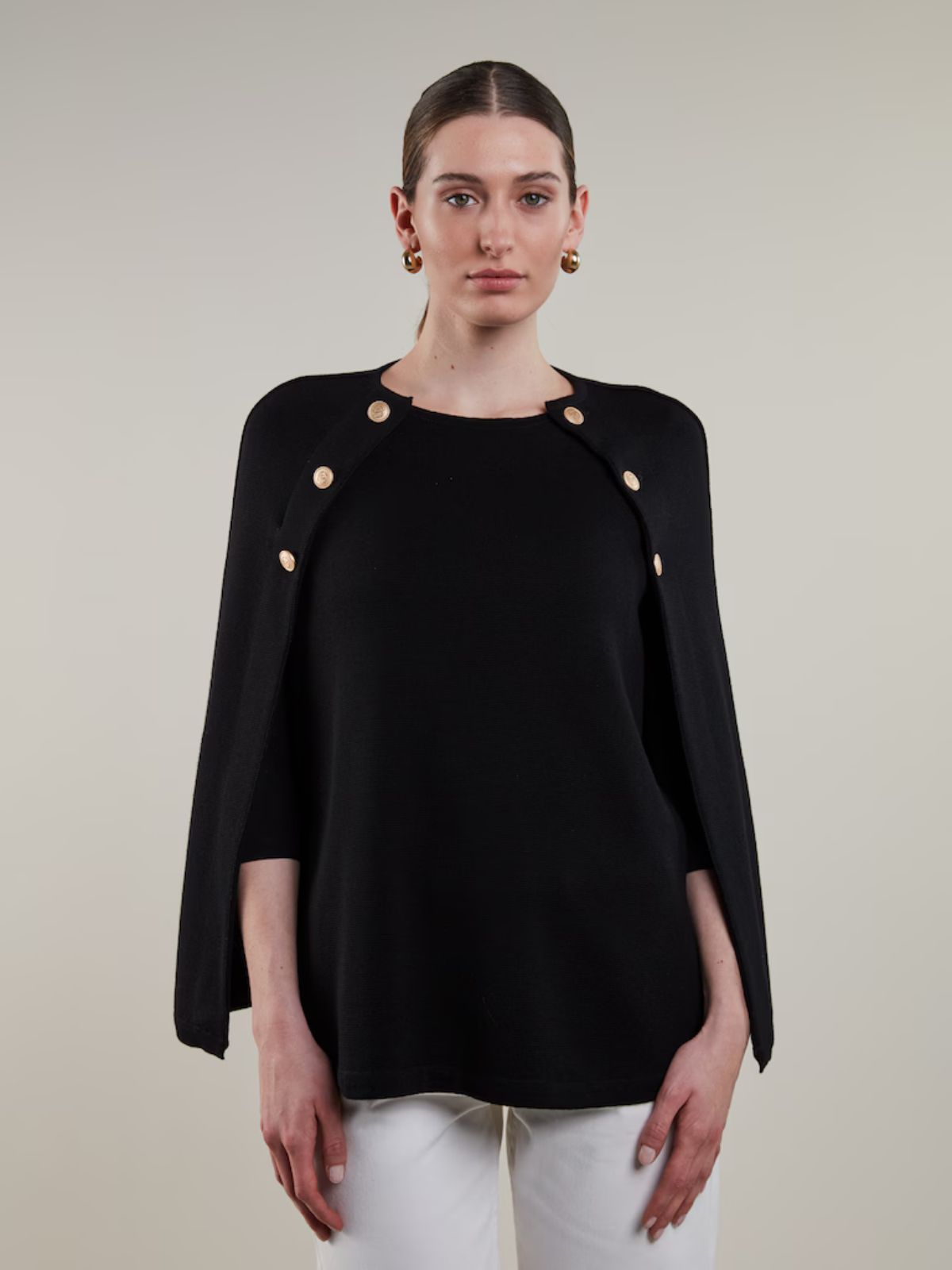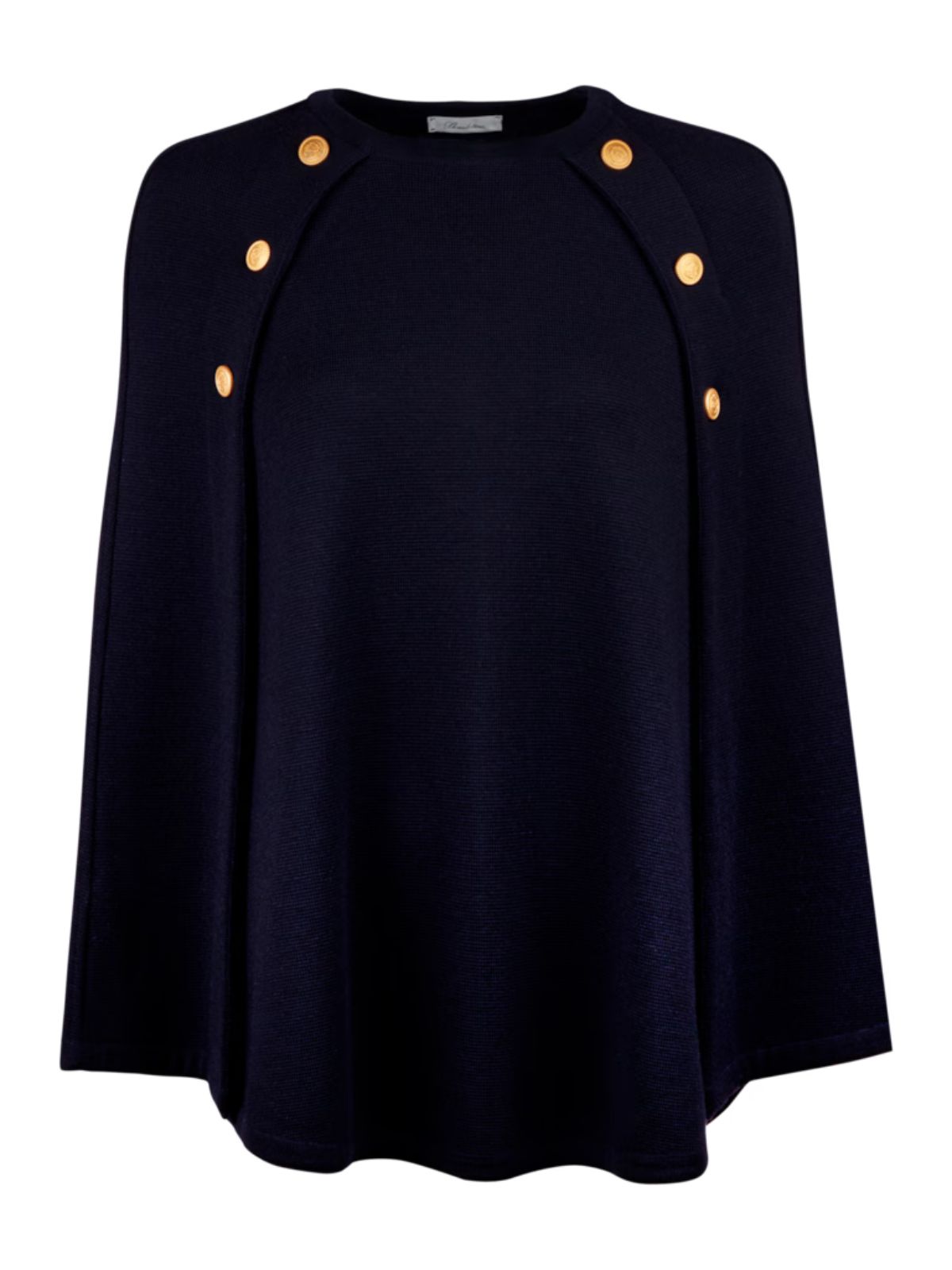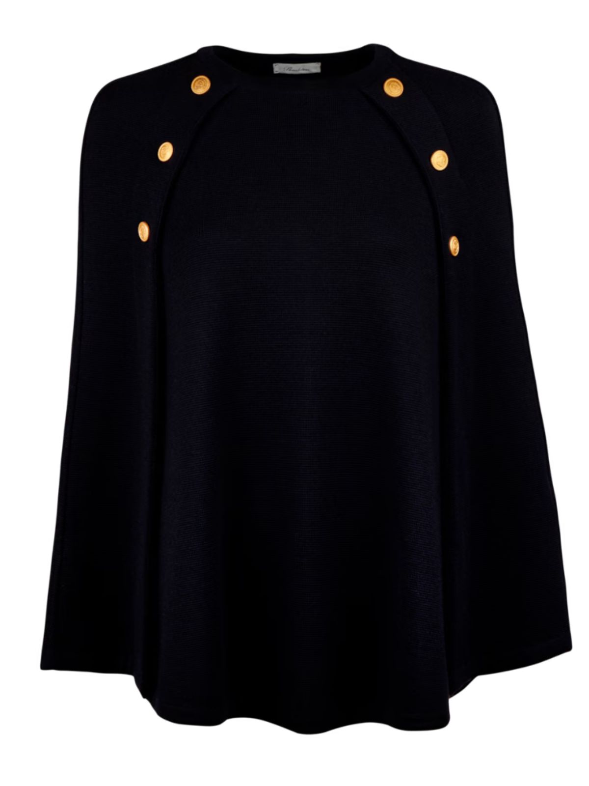 Eksklusiv ulden poncho kappe fra STENSTRØMS i den blødeste merino uld kvalitet. Poncho kappen er raffineret designet med dekorative guldknapper og i en smuk løstsiddende pasform.Perfekt som overtøj i overgangs perioden!