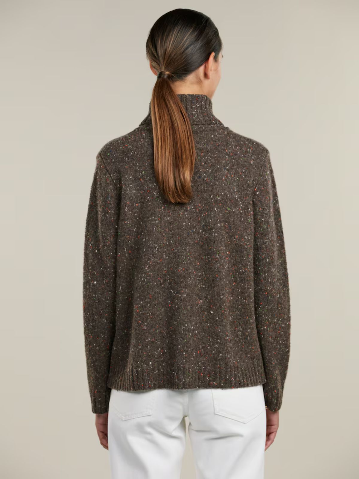Komfortabel ulden rullekrave strik sweater fra STENSTRØMS i en skøn kvalitet med fine effekter i garnet. Strikken har en ribstrikket rullekrave ligeså manchetter og bund.Længde: ca. 63 cm målt i str. M
