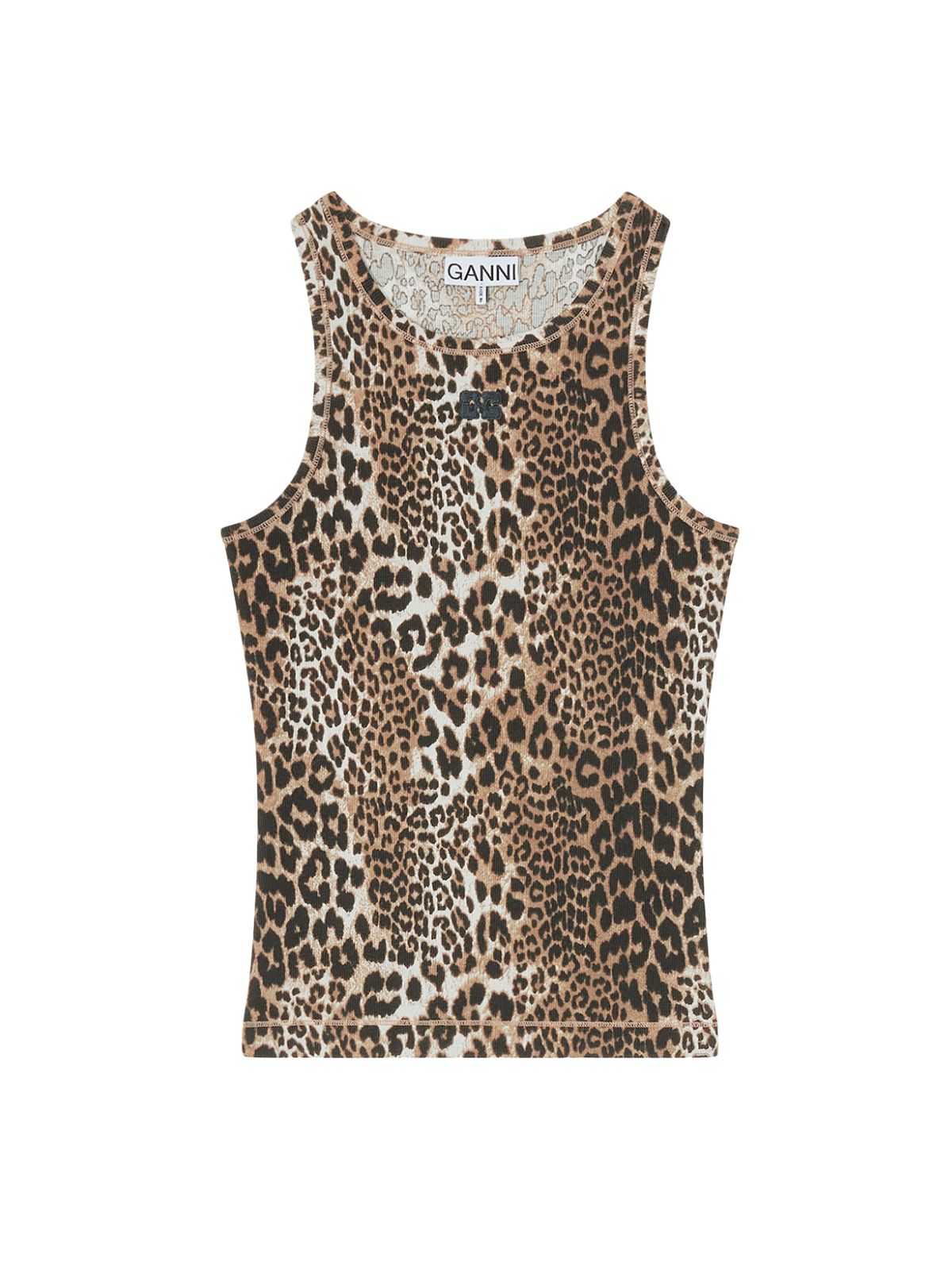 Ribbet tank top med leopardprint