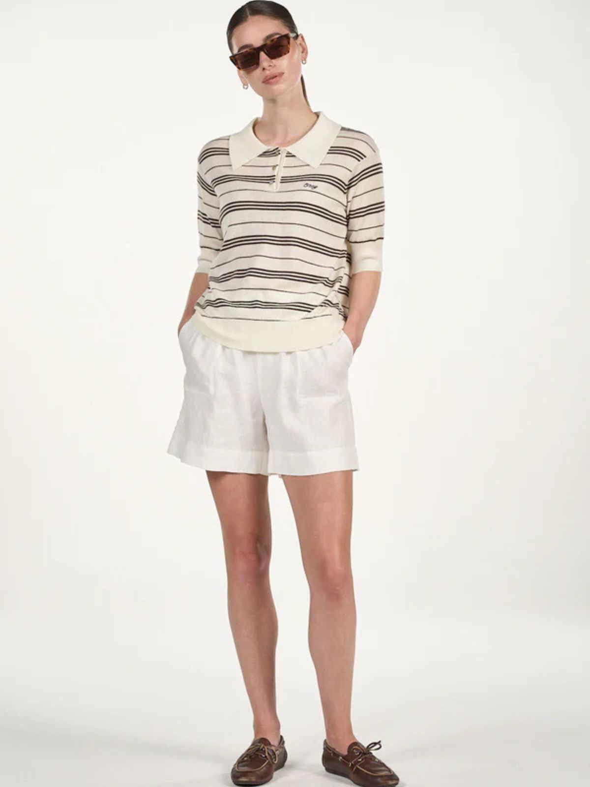 Malli POLO-shirt fra O`TAY i eksklusivt design og i 100% uld. POLO-Shirten er både let og blød i stoffet og føles behagelig mod huden og giver et et sofistikeret udtryk. Blusen har krave og de tre knapper foran tilfører et elegant touch samt med et O'TAY-logo foran. Ærmerne har ribkanter. Den er perfekt til et afslappet, men stilfuldt lookLængde: ca. 57 cm Målt i str. M