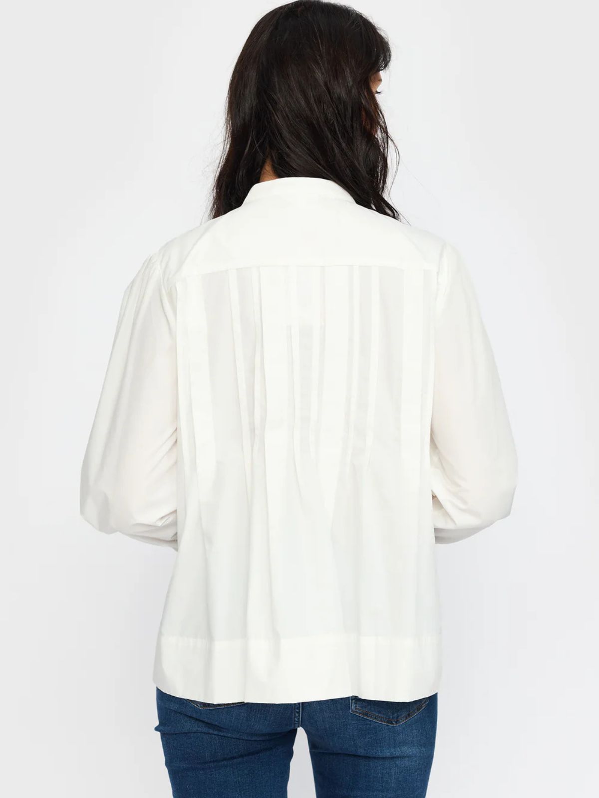 Elegant bluse fra 2 BIZ med plissé læg foran og på manchetterne. Blusen har en rund hals samt gennemgående knaplukning foran. Blusen har lange ærmer med draperede skuldre. En fin bluse til både hverdag og festlige anledninger!Længde: ca. 60 cm
