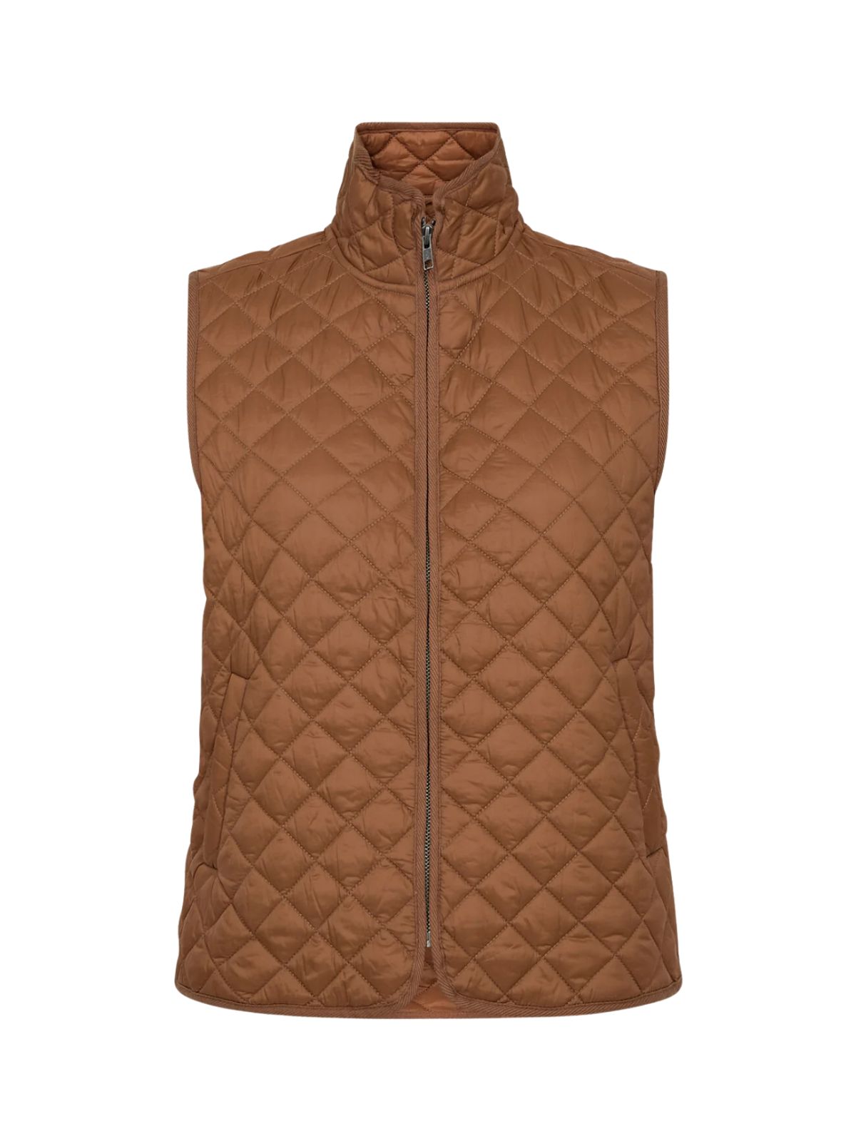 SC-BENETE 1 er en elegant quiltet vest i 100% nylon med høj krave og fuld lynlåslukning foran. Perfekt til lag-på-lag styling sammen med rullekrave og jeans.