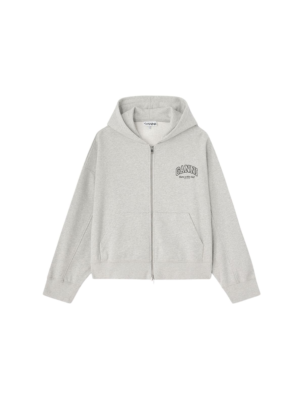 Denne hættetrøje fra GANNI kombinerer komfort og stil med hætte, lynlåslukning foran og det ikoniske GANNI-logo. De to frontlommer og de ribbede manchetter på ærmerne giver et afslappet, men gennemført look, perfekt til hverdagsbrug. Fremstillet i 100% økologisk bomuld for blødhed og bæredygtighed.