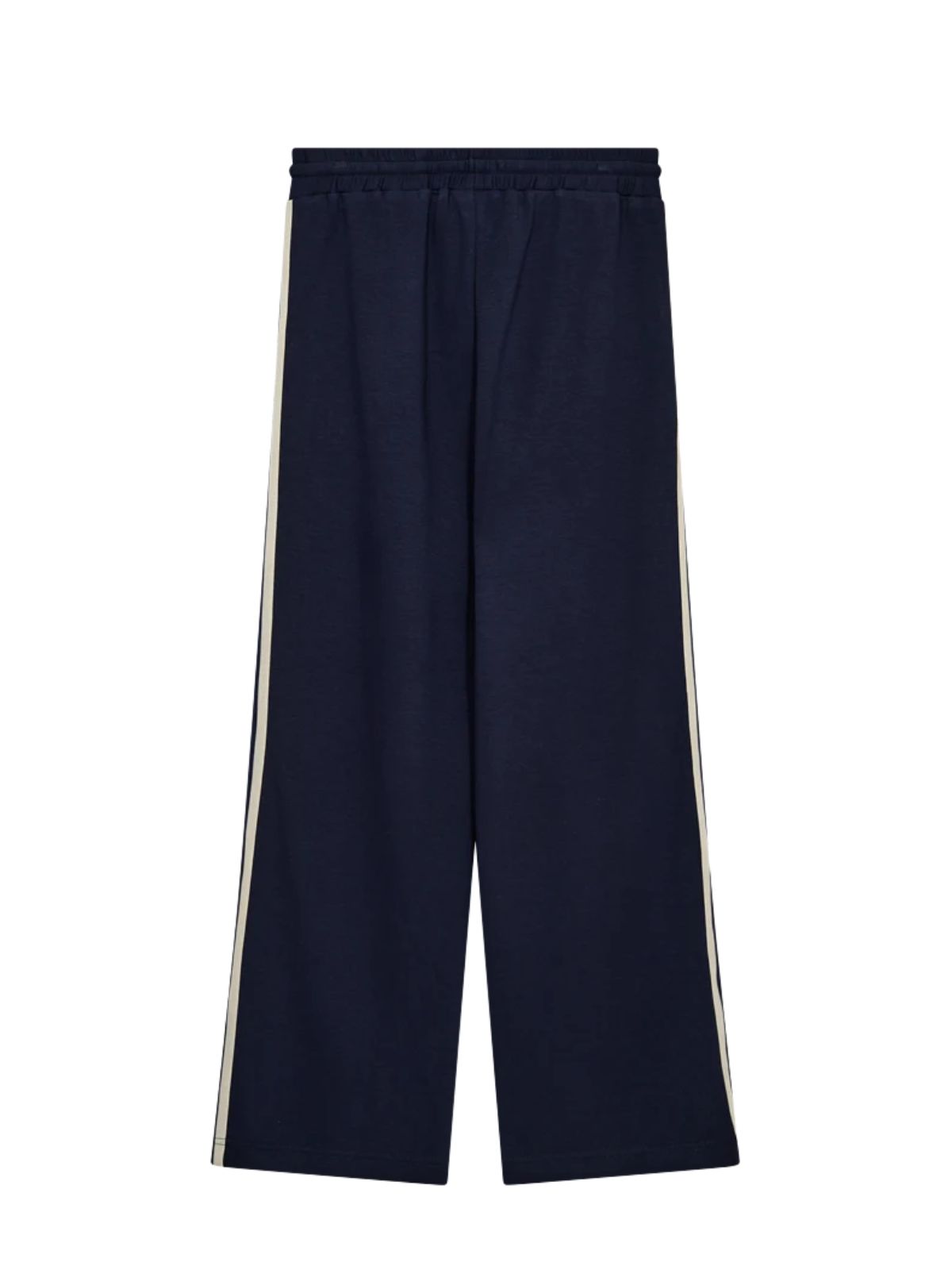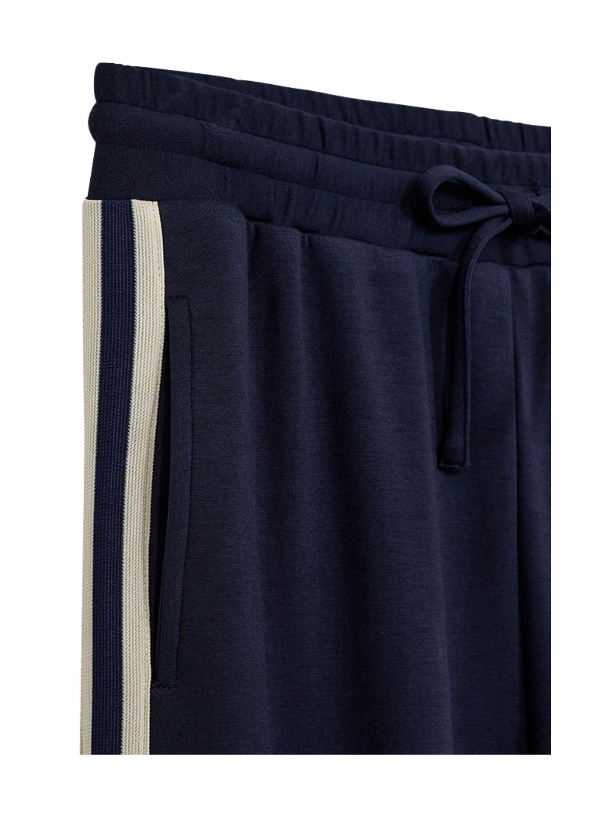 Bukser fra Freequent i en blød og behagelig kvalitet med elastik og snøre i taljen. Modellen har sidelommer, brede ben med vidde samt tapedetalje i siderne, som giver et afslappet og moderne udtryk.