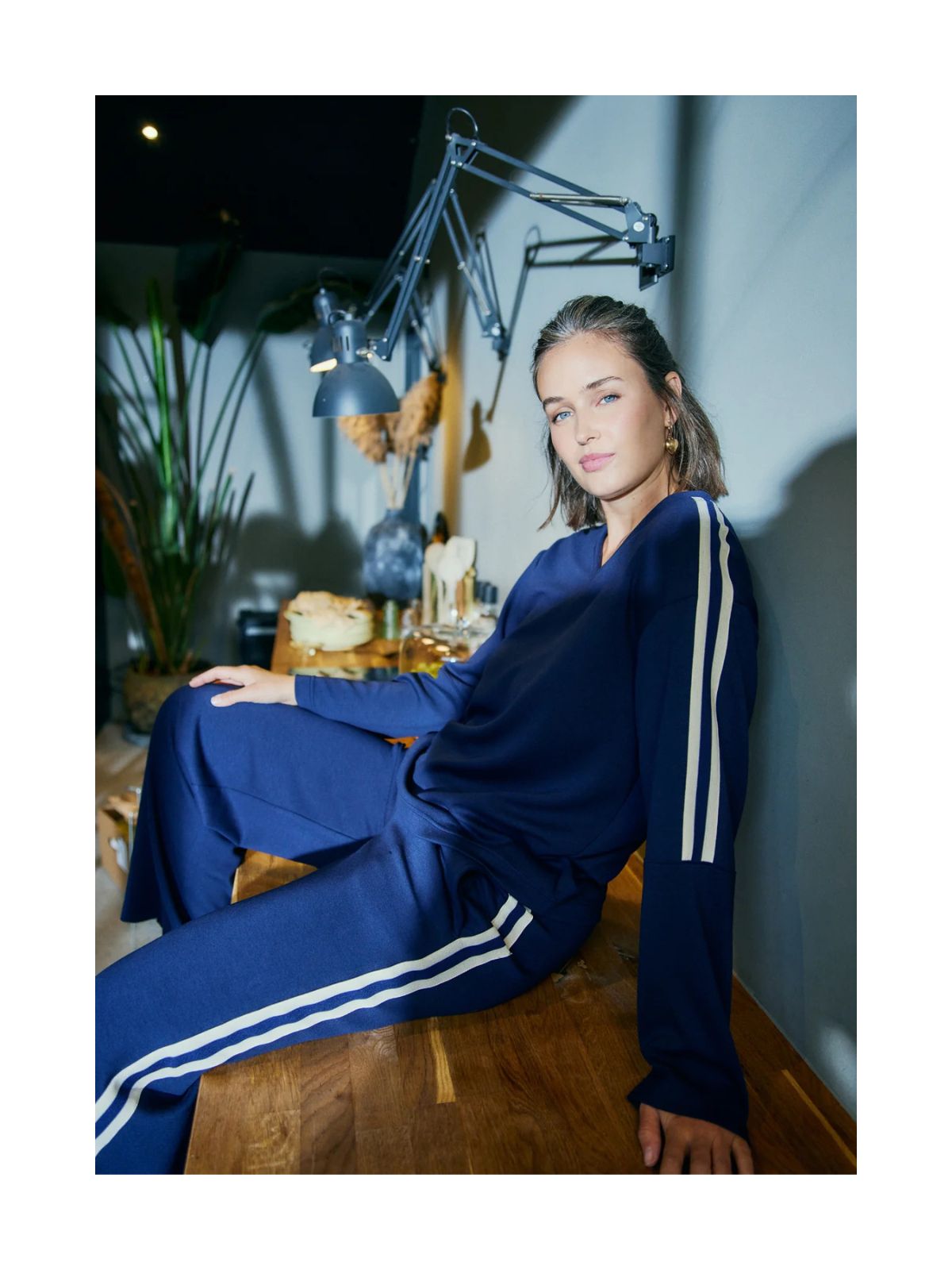 Detaljer: V-udskæring, lange ærmer samt tape- og sømdetaljer
