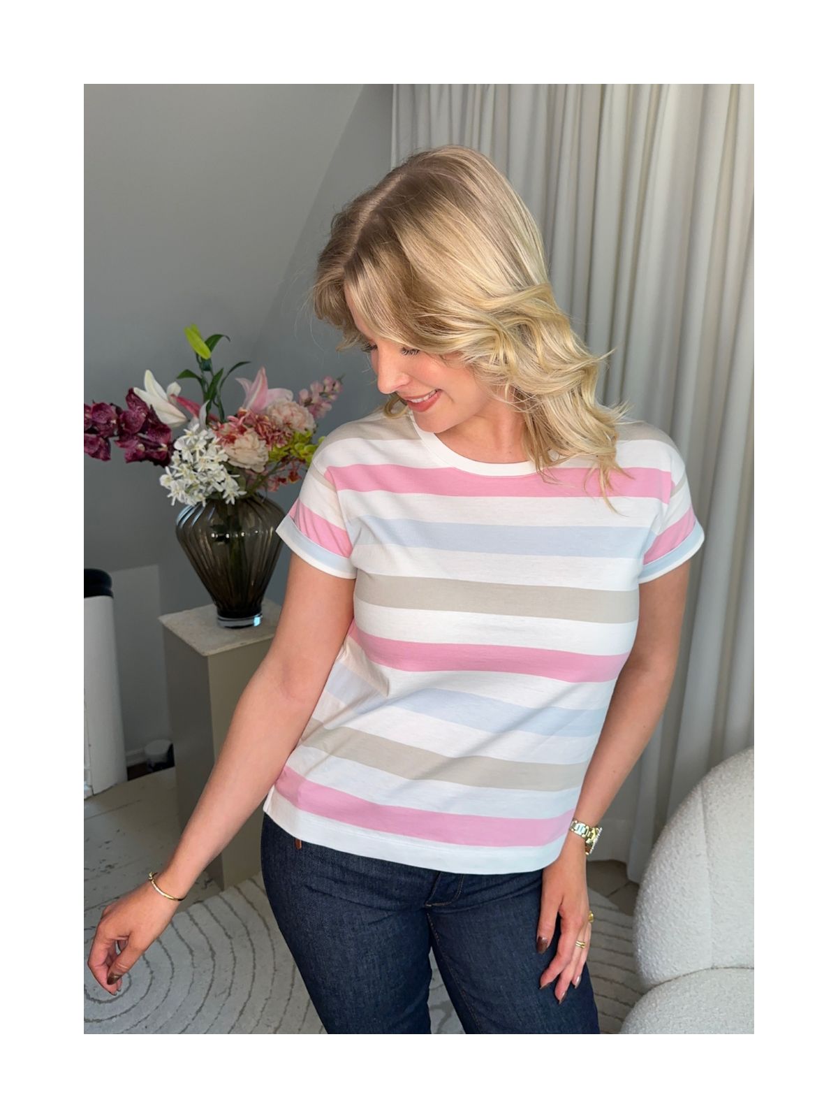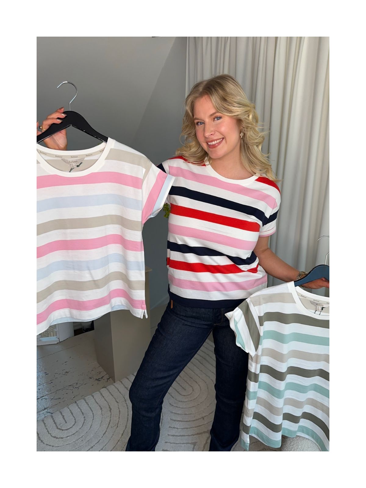 Lyndale T-SHIRT fra Barbour er en klassisk og afslappet bomuldstop med et roligt, naturligt farvespil. De bløde grønne og neutrale striber skaber et tidløst udtryk, der passer perfekt ind i Barbours ikoniske univers.