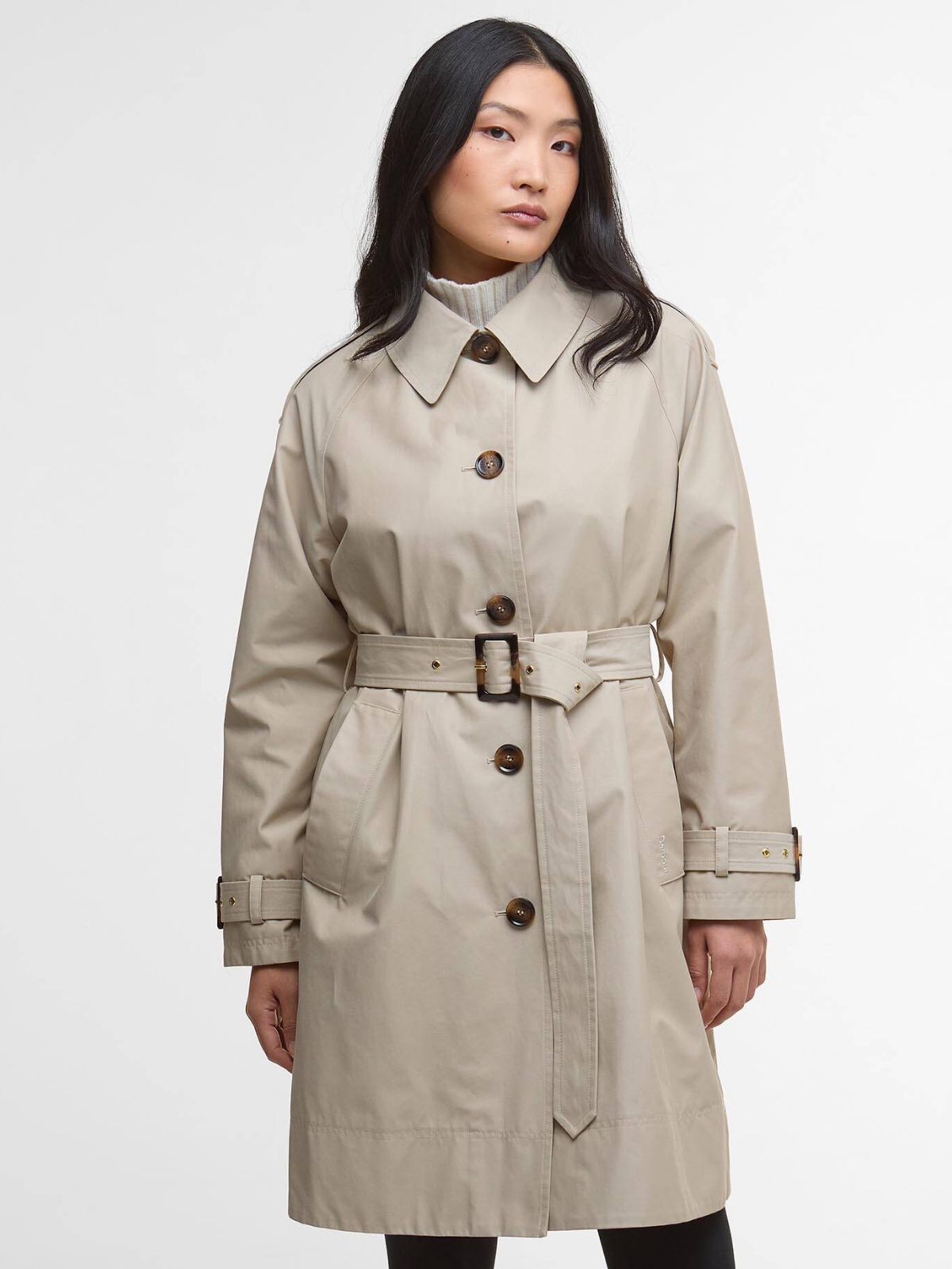 Barbour Maia Showerproof Jacket kombinerer det bedste fra overtøj med sit trench-inspirerede design. Med bælte i taljen og raglanærmer har denne model overdimensionerede skulderstropper og paspolerede lommer, der sikrer uforudsigeligt vejr og en upåklagelig påklædning. Jakken har en dekorativ krave med det klassiske ternede for samt knaplukning.Sæson: Forår / Sommer / Efterår