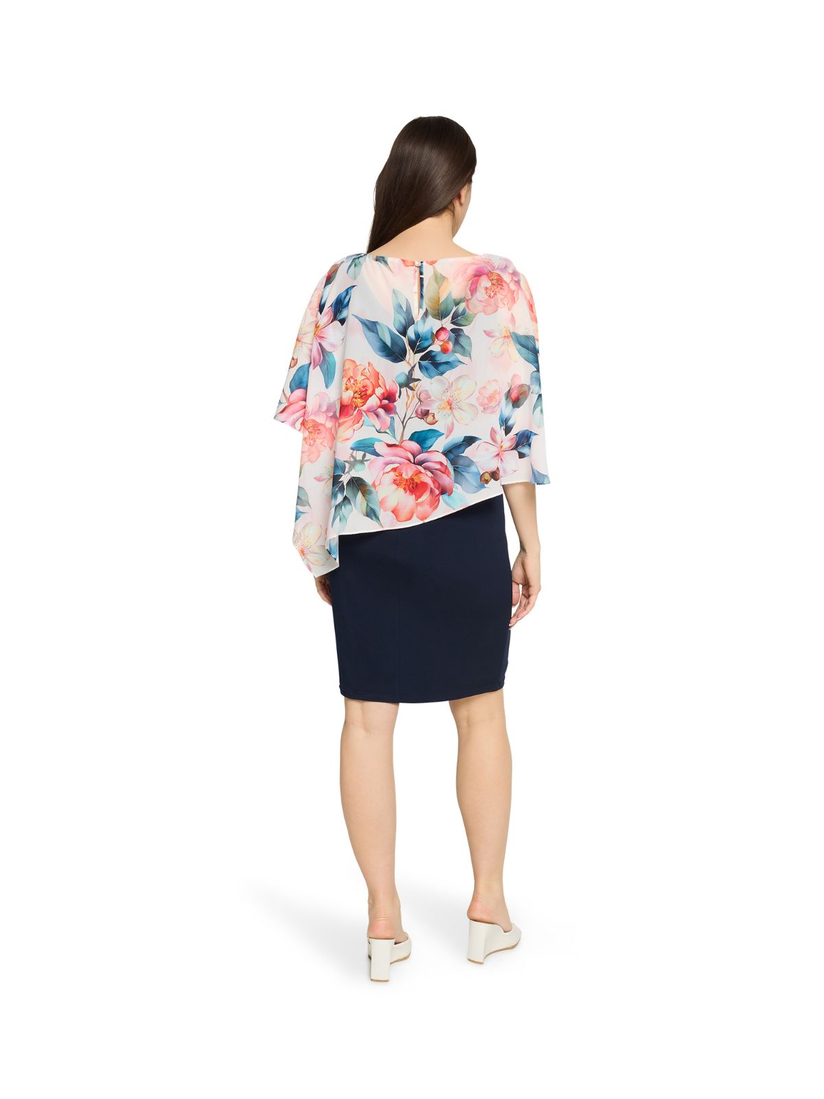 Raffineret cocktail kjole fra VERA MONT med elegant fast flora bolero. Kjolen er i glat slank model uden ærmer med rund hals og knalukning i nakken. Kjolen har en fast flora bolera i smukke farver og i flatterende design der giver kjolen og dig et fantastisk look.Længde: xa. 98 cm