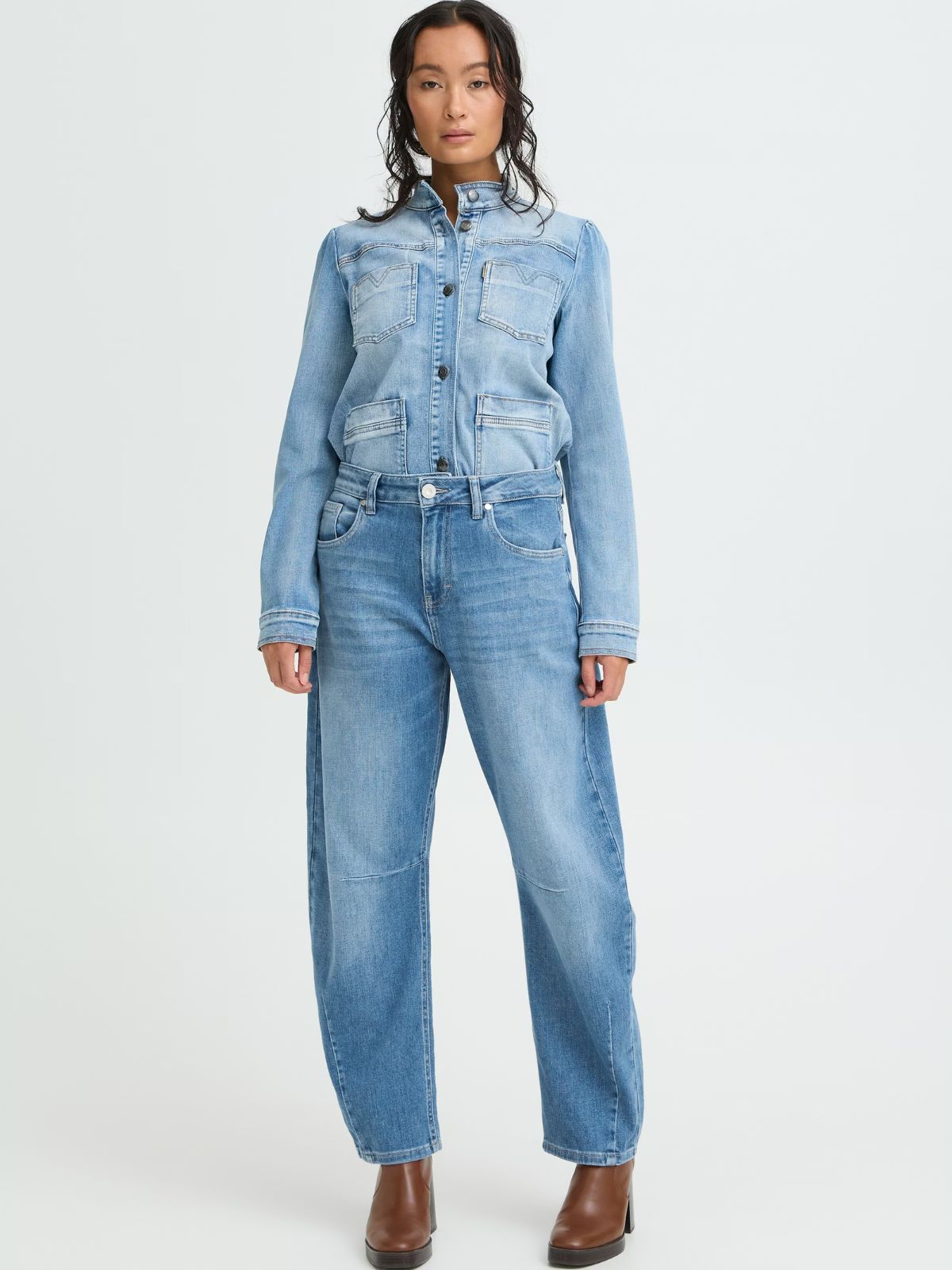 Fashion jeans fra PULZ med lige ben, høj talje og klassisk fem-lomme-design. Jeansèn har synlige knæsømme og en stilren silhuet skaber et moderne denimudtryk.Indvendig Benlængde: ca.78 - 80 cm