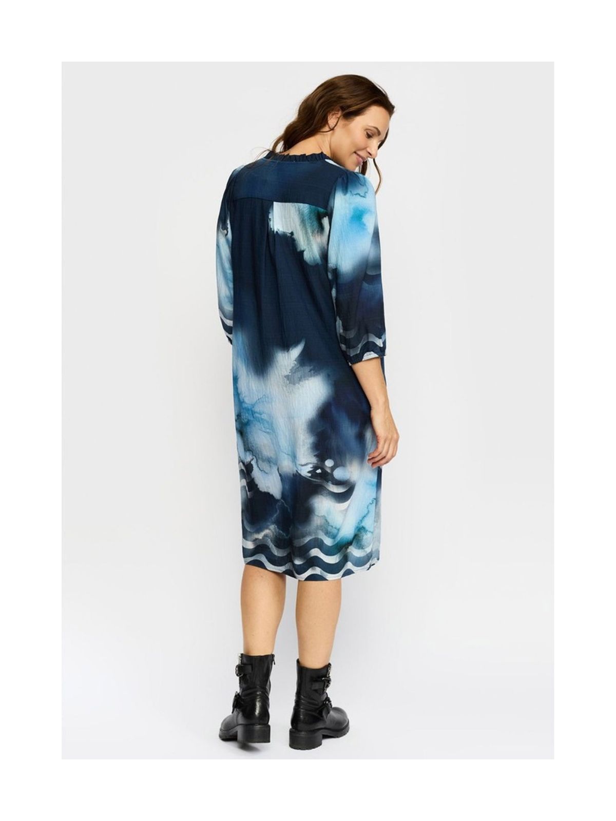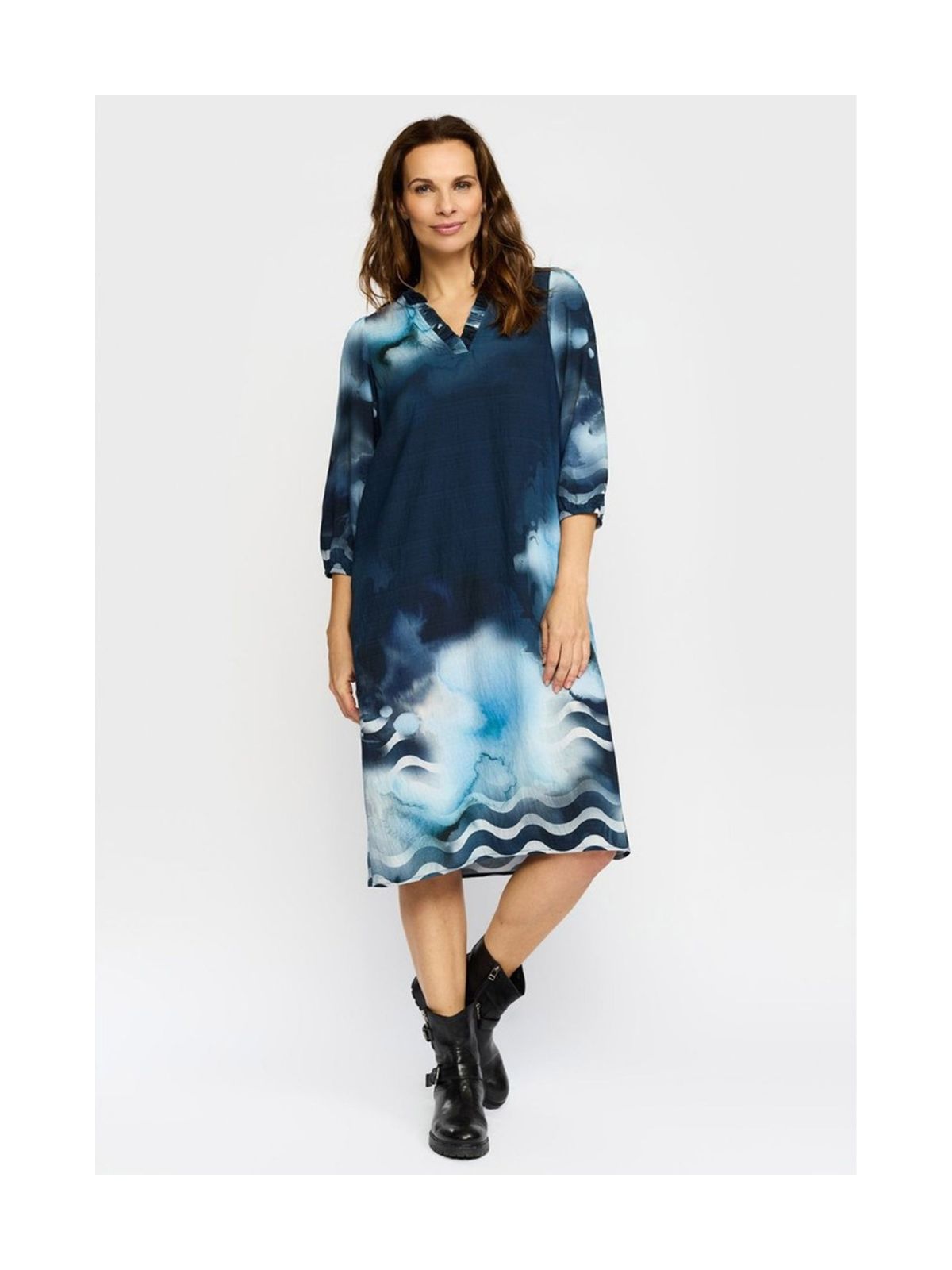 Feminin kjole fra 2 BIZ i loose fit design samt i flotte farver. Kjolen har rund hals og V-udsnit samt lange ærmer med elastisk kant.Længde: ca. 100 cm