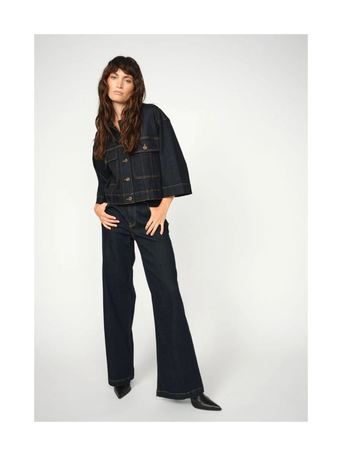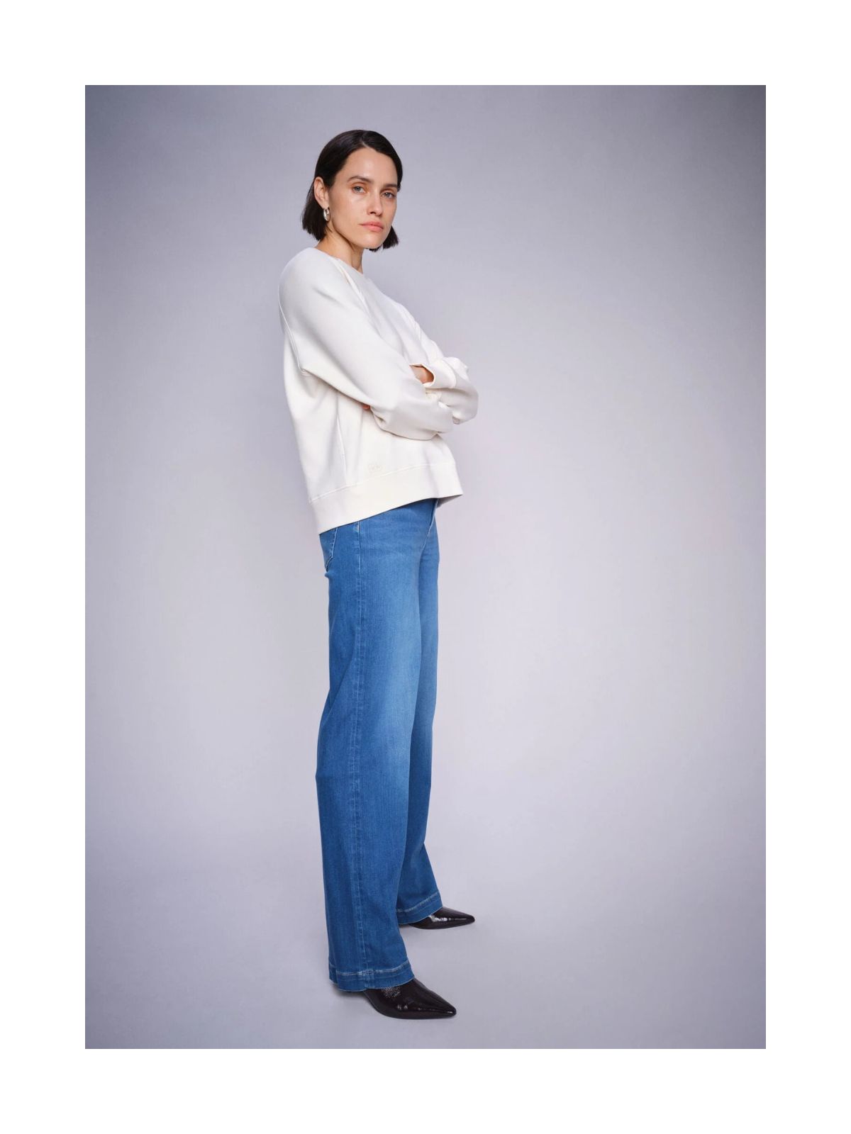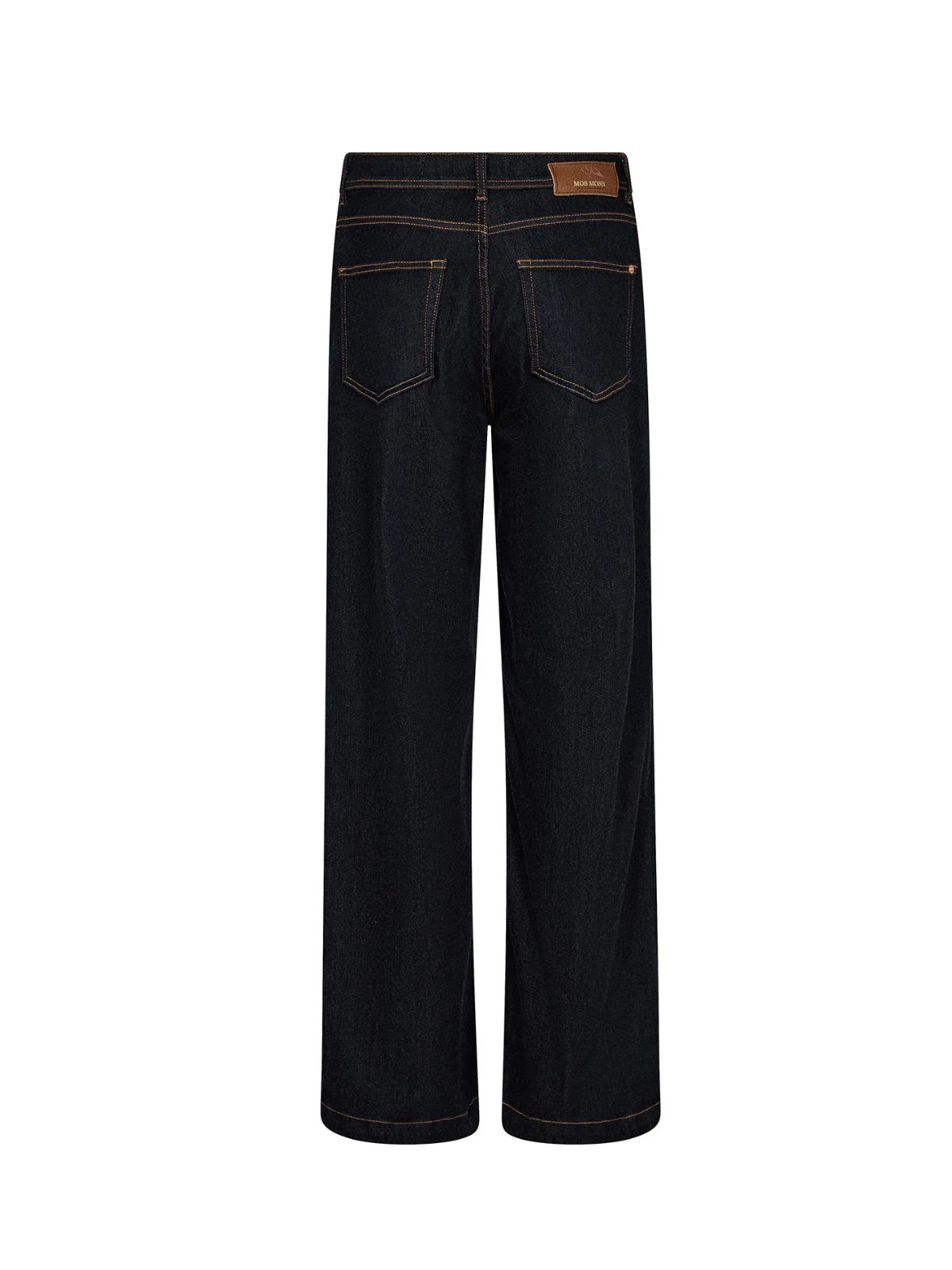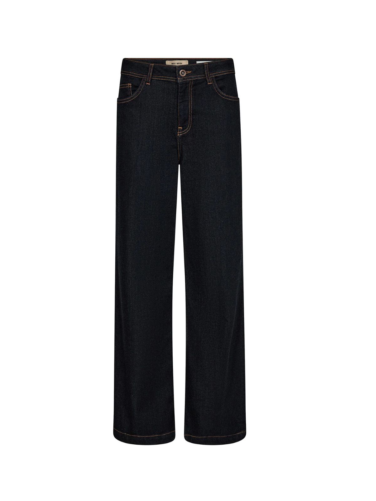 Flatterende wide leg jeans fra Mos Mosh med høj talje og fuld længde. Buksen er designet til at forlænge benene og skabe et sofistikeret, men ubesværet udtryk. Det bløde denim og den strukturerede pasform gør dem perfekte til både afslappede dage og stilfulde aftener. Style dem med en sprød skjorte eller en skræddersyet blazer for et elegant denimlook.Indvendig Benlængde: ca. 82 cm