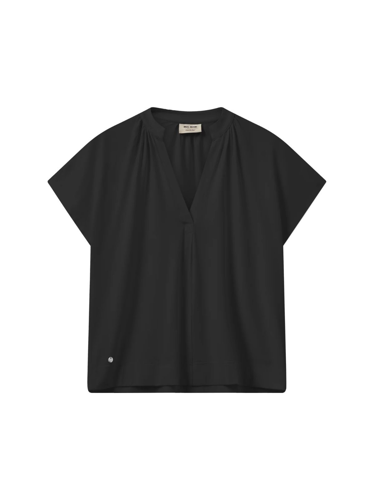 Elegant bluse fra Mos Mosh designet i en afslappet silhuet med en flatterende V-udskæring med slids. Blusen er i glat let materiale som falder smukt og gør den perfekt både til lag-på-lag styling og alene. Style den med skræddersyede bukser for et raffineret look eller med jeans for et ubesværet hverdagsudtryk.Længde: ca. 60 cm