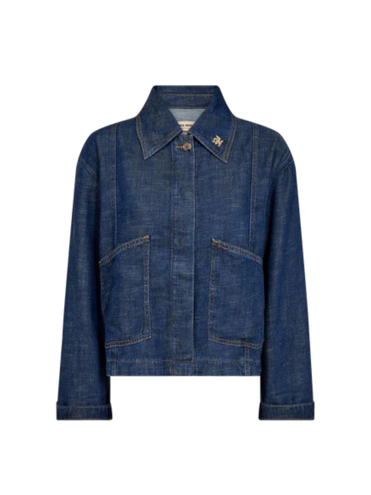 Smart denim-inspireret jakke fra MOs Mosh giver et raffineret udtryk til afslappet styling. Jakken er designet i en afslappet pasform med klassisk krave og knaplukning og har rene linjer og diskrete stikninger for et moderne finish. Perfekt over kjoler, strik eller skræddersyede bukser for et alsidigt og ubesværet look.Længde: ca. 60 cm