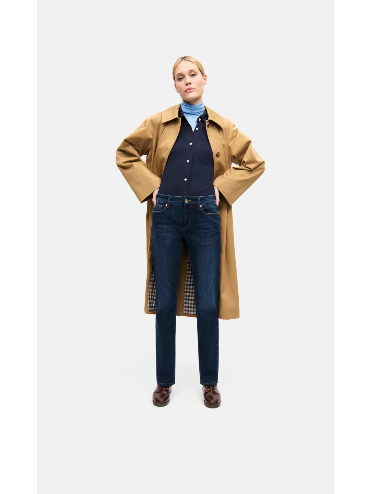 Smart jeans fra CAMBIO i fuld længde samt i 5 pocket design i en flot vask. Buksen har medium talje samt slank lårvidde.