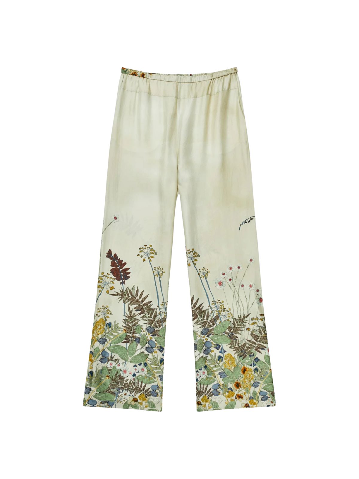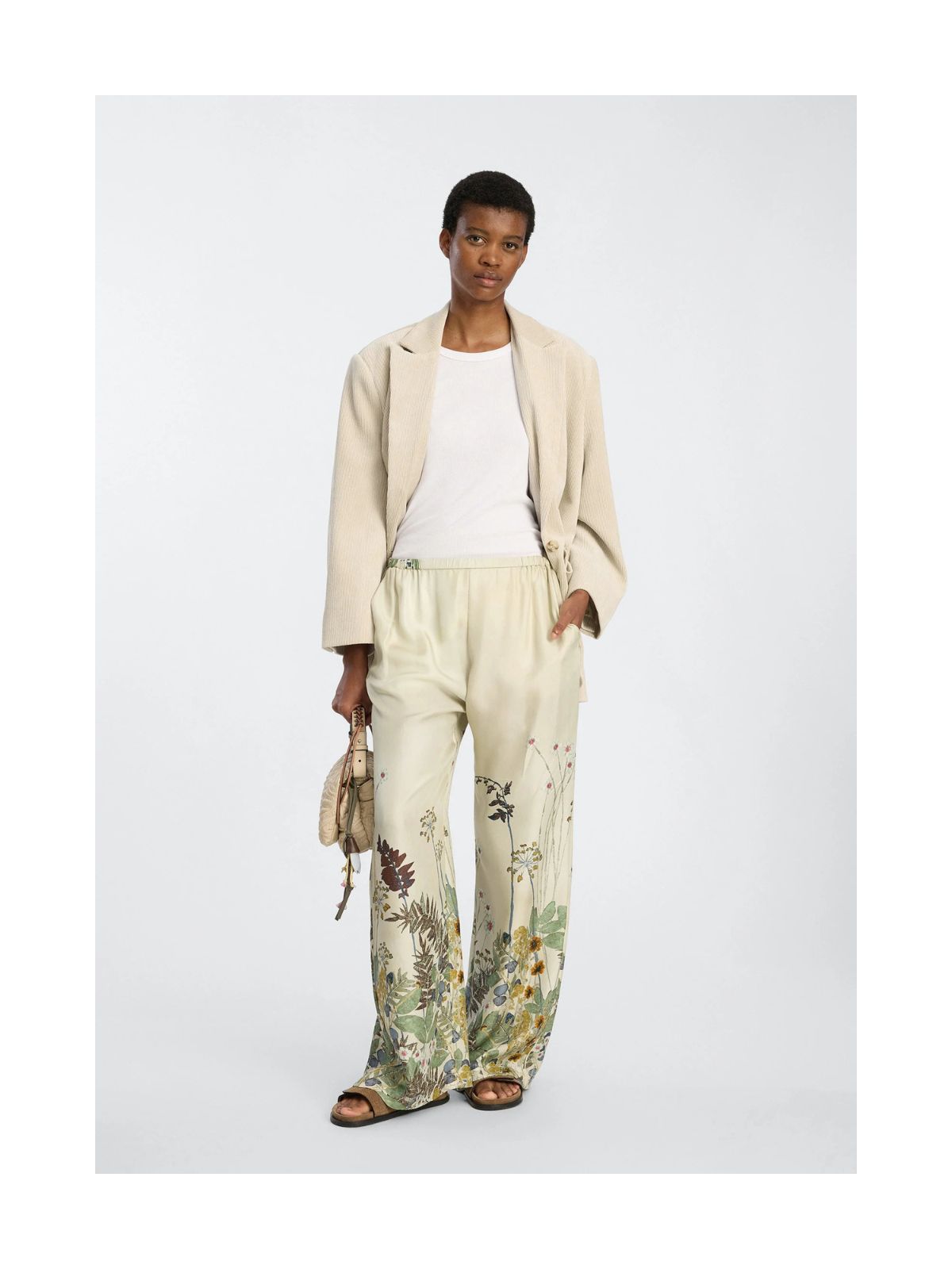 Elegante silke bukser fra MUNTHE med et botanisk print skabt i 100% silke. Buksen har en lige pasform, elastisk talje og en blød drapering, der giver et afslappet fald.Indvendig Benlængde: ca. 82 cm