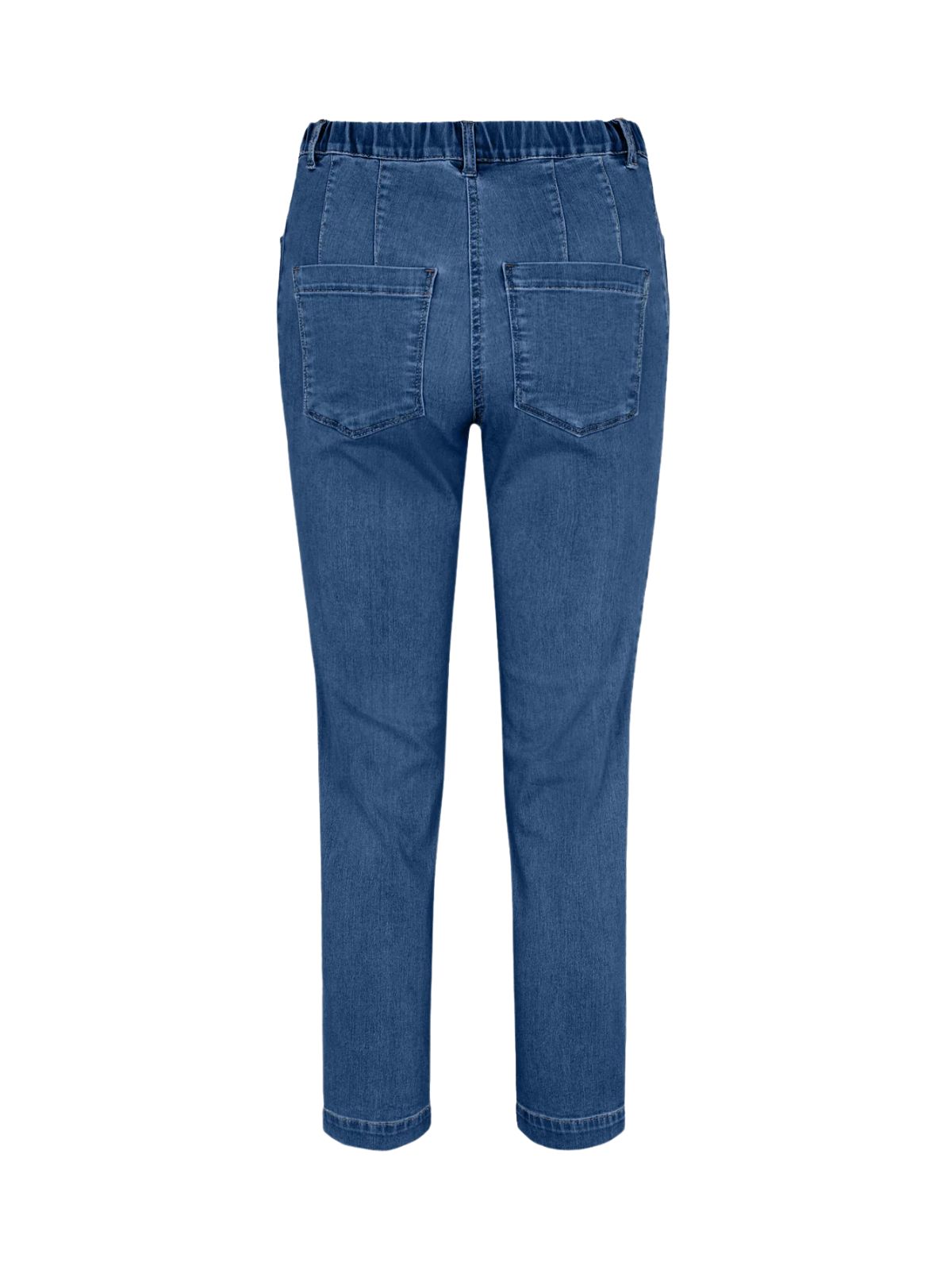 Detaljer: 5-pocket design, bæltestropper, afrundede forlommer