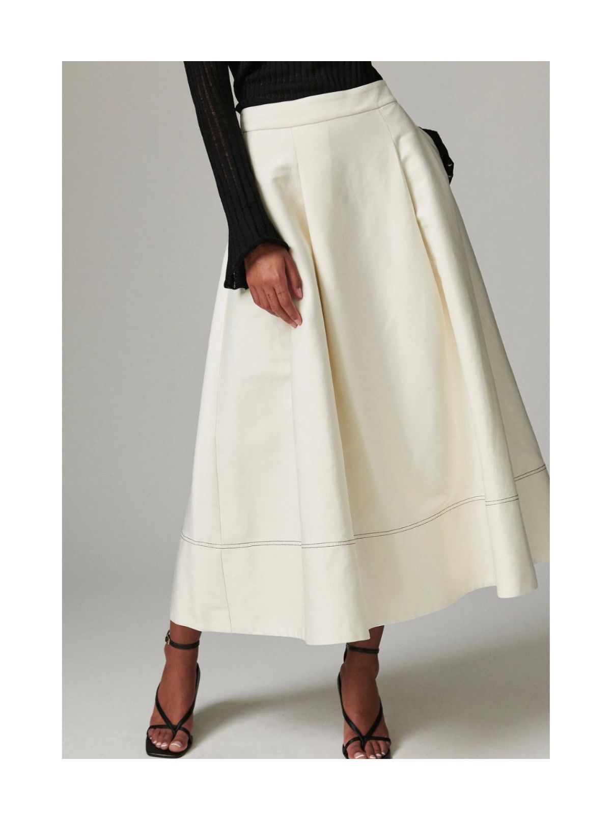 Midi A-formet nederdel med lav talje, plisseringer ved linningen og lynlåslukning bagpå. Stoffet har en let glans, der giver et skræddersyet og elegant udtryk – perfekt med en silketop for et feminint look.