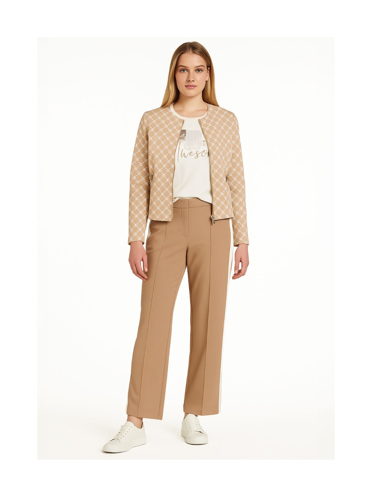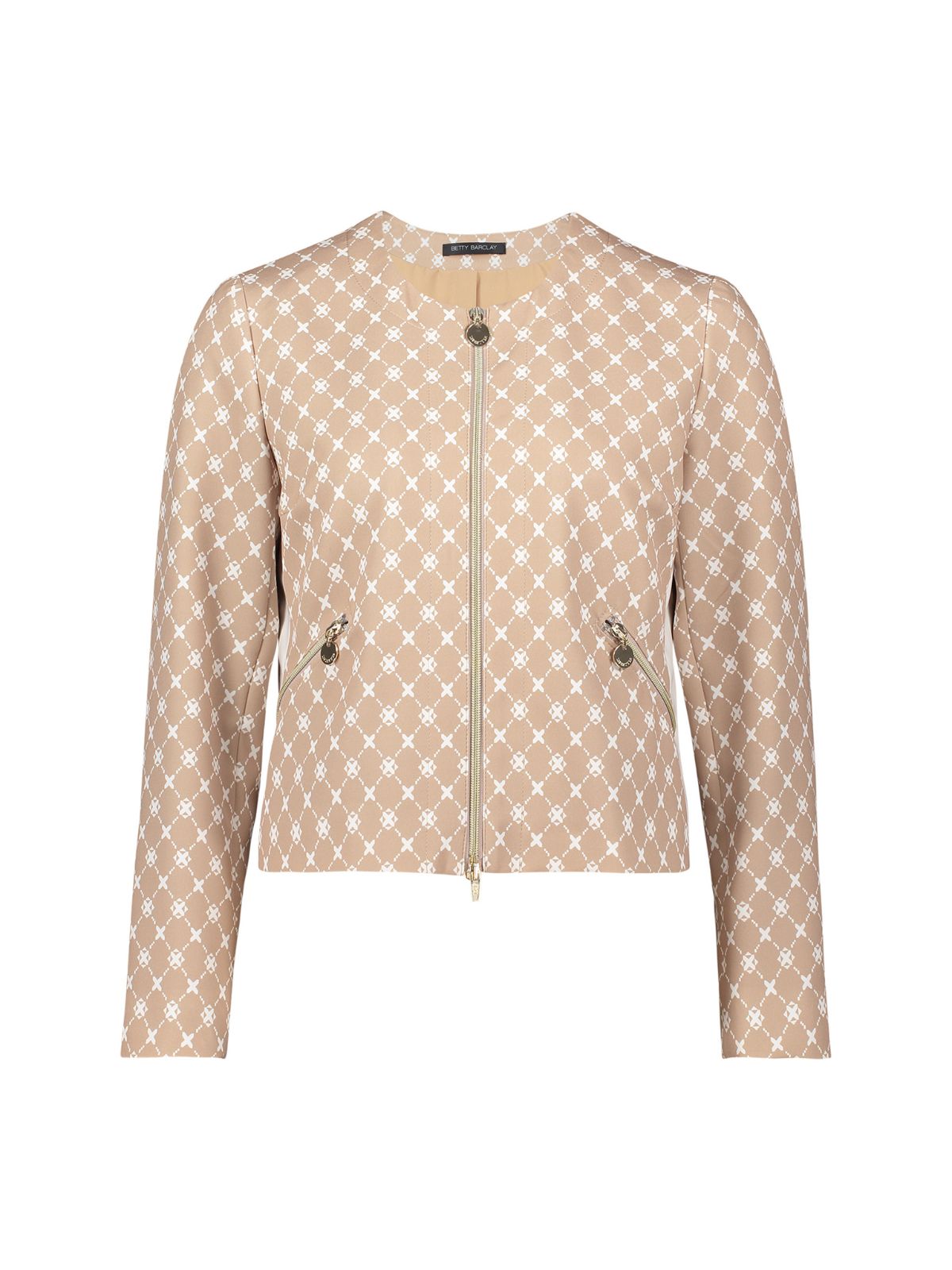 Sofistikeret kort blazer jakke fra Betty Barclay i klassiske farver samt enkelt design. Blazer jakken har rund hals samt lynlås lukning og lange ærmer. Smart til både en kjole eller et par pæne bukser.Længde: ca. 54 cm