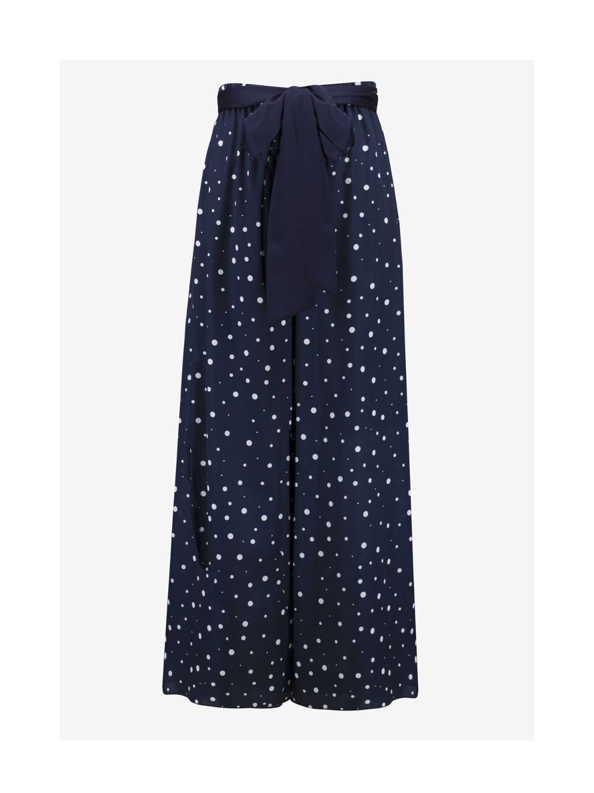 Charmante bukser med vide ben fra Joseph Ribkoff er den perfekte blanding af stil og komfort og et must-have til din garderobe. Disse bukser med bælte har et højtaljet design og et elegant polkaprikket mønster, der er ideelt til både afslappede og semi-formelle anledninger. Style et feminint og afslappet look med disse alsidige bukser, der ubesværet kombinerer elegance og komfortabel nydelse!Indvendig Benlængde: 76 - 86 cm alt efter str.