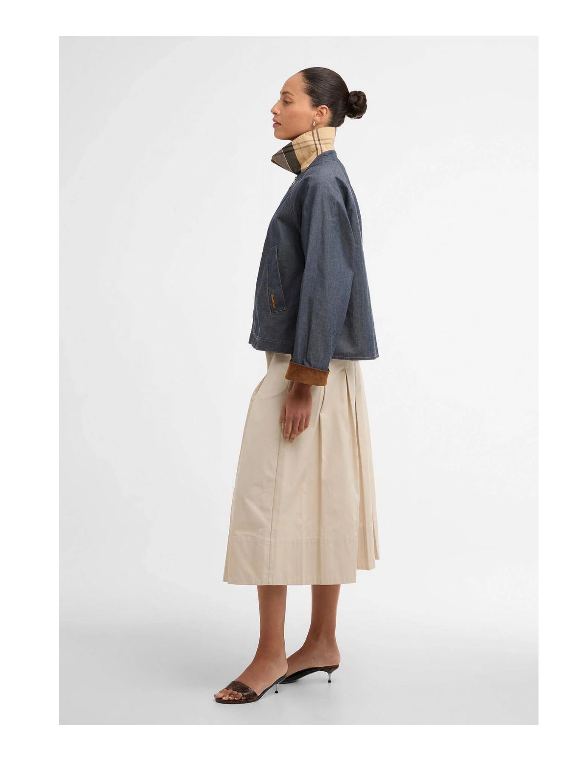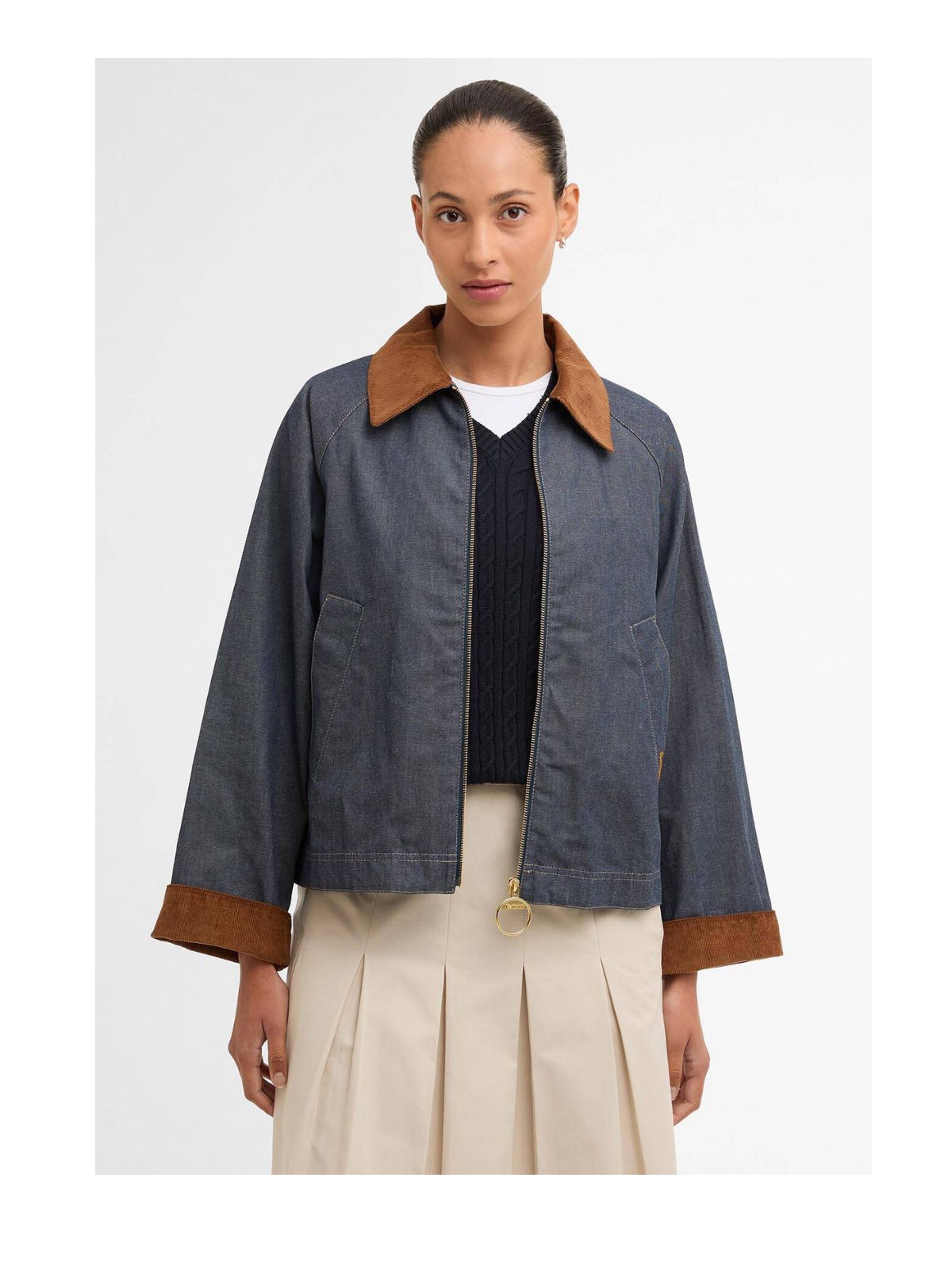 Freckleton denim jakke fra BARBOUR kombinerer klassisk funktionalitet med et moderne twist. Jakken har en kort, diskret A-formet silhuet og en dyb, omvendt bokslæg bagpå for ekstra komfort. En synlig lynlås foran med en karakteristisk ringtrækstrop og pæne paspolerede lommer giver et moderne look, mens snørebåndsmanchetter tilføjer et blødt, klassisk touch.Sæson: Forår / Sommer
