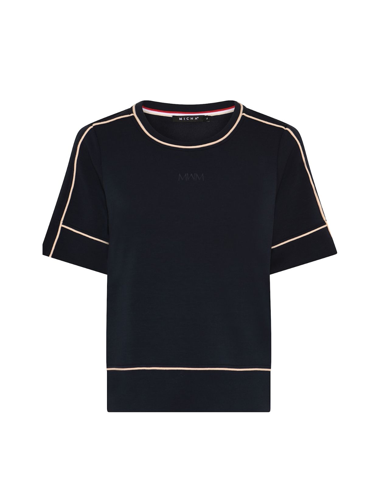 Feminin bluse fra MICHA i sport casual design med pipeline effekt. Blusen har rund hals, et lige snit samt korte ærmer.Længde: 65 cm