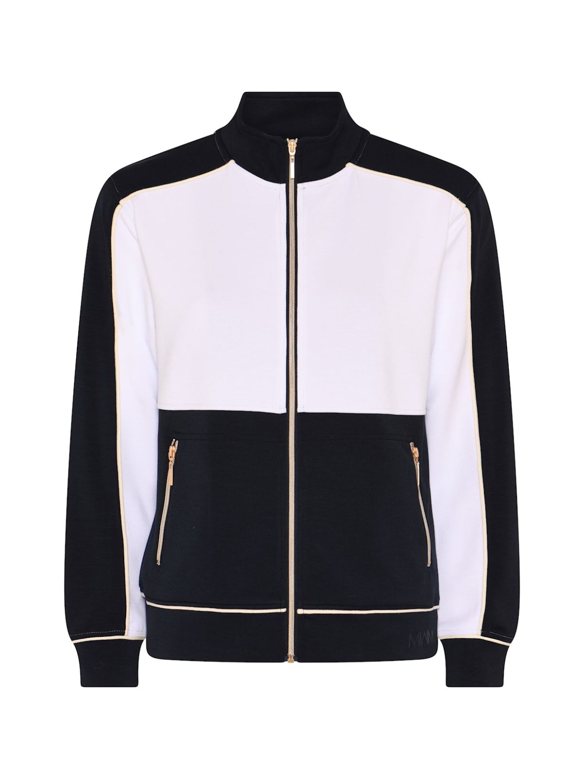 Sporty cardigan fra MICHA i smarte blok color med pipeline effekt samt i regular design med høj krave, lynlås lukning samt stiklommer med lynlås.Længde: 65 cm
