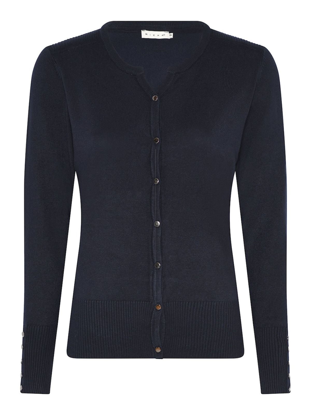 Cardigan i klassisk design fra MICHA med rund hals samt elegant knaplukning og rib manchetter med knapper.Længde: 64 cm