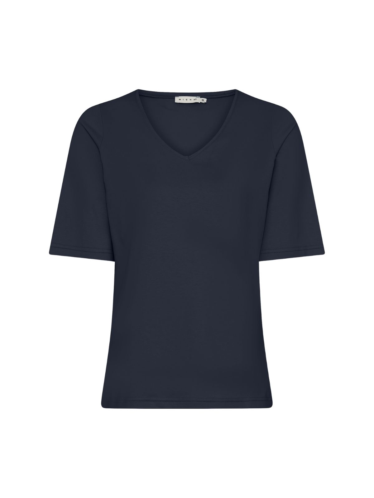 Basic T-shrt fra MICHA med V-hals og korte æmer.Længde: ca. 60 cm
