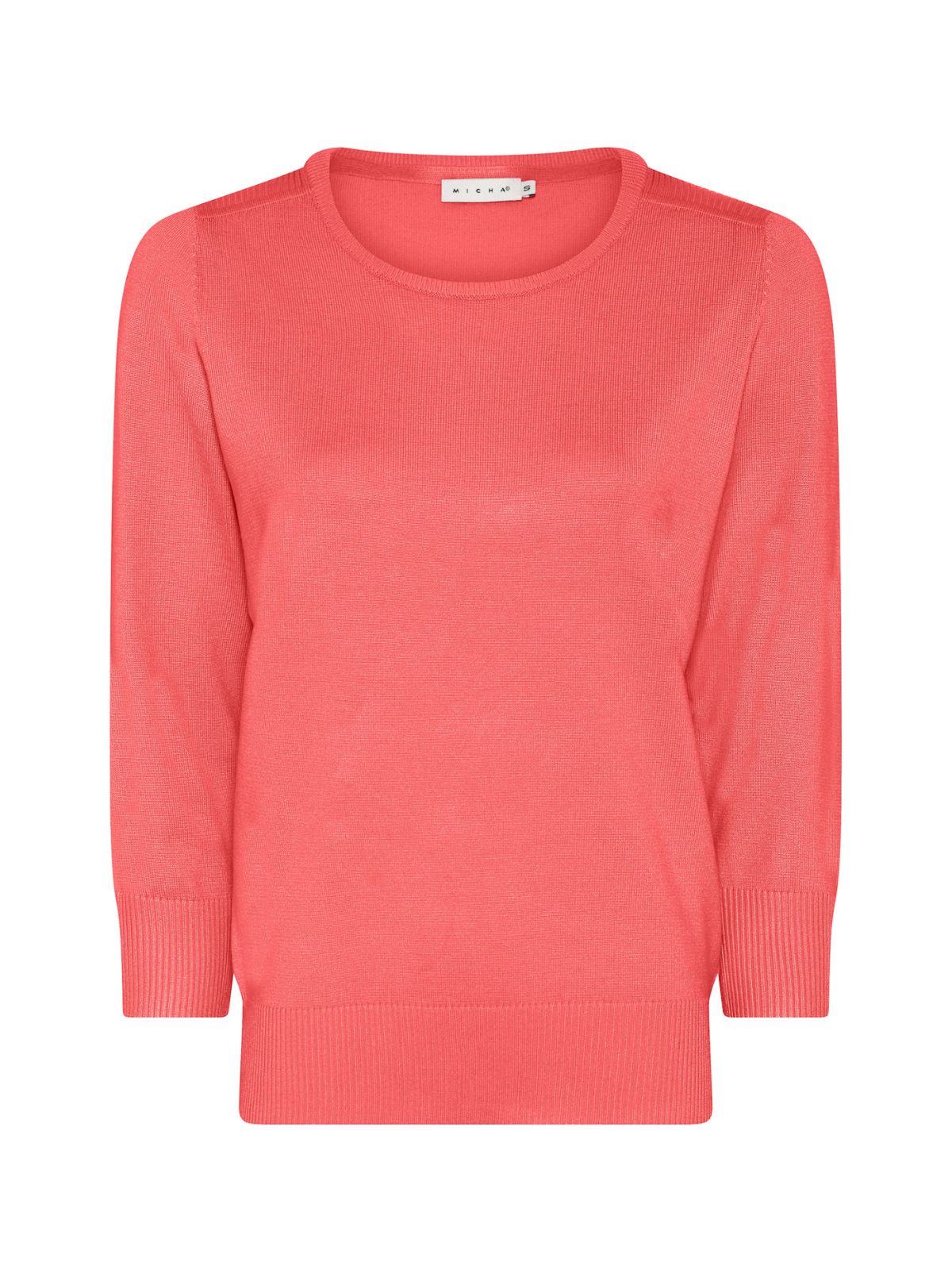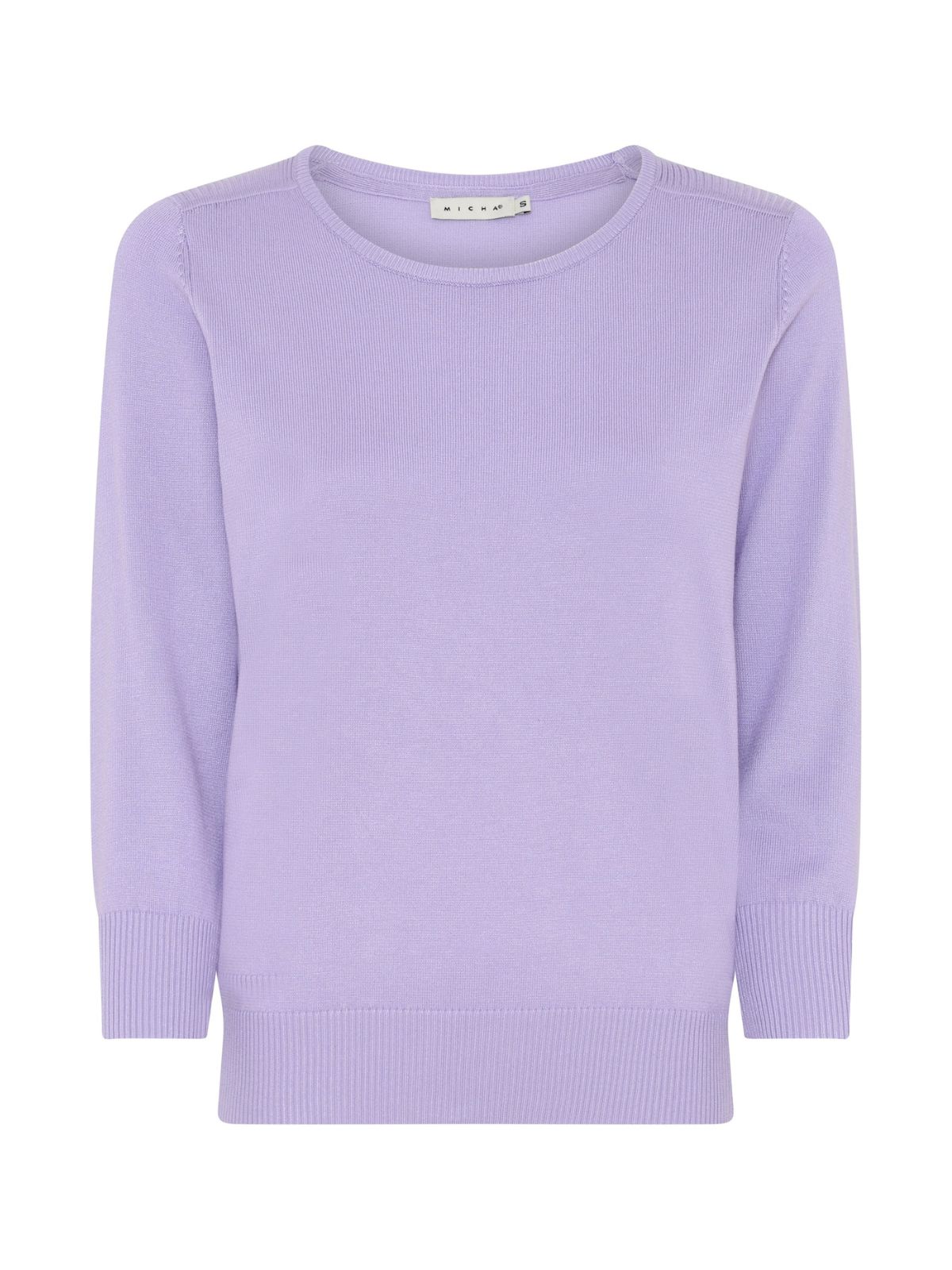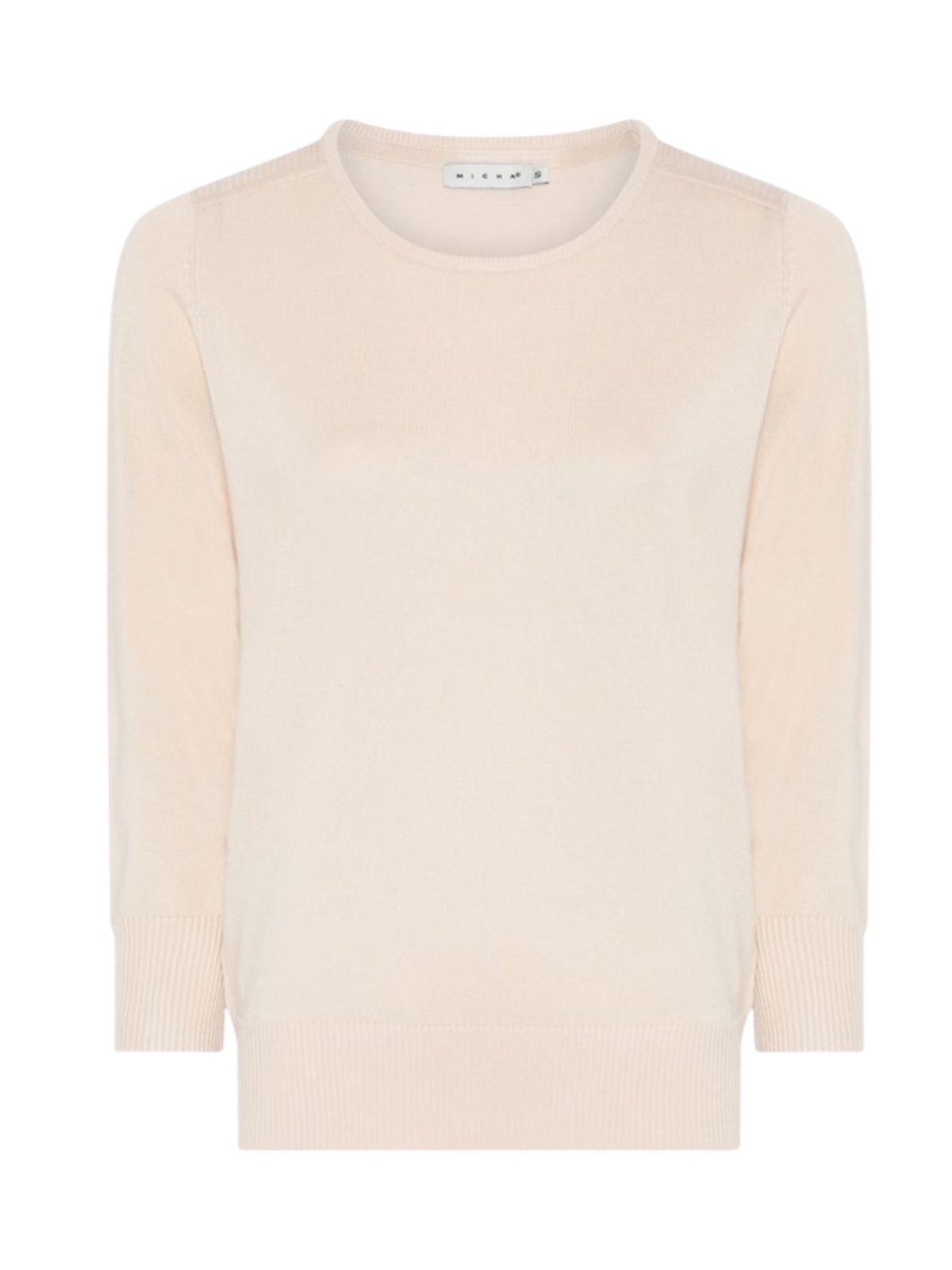 Klassisk crew neck strik fra MICHA med rund hals og lange ærmer med bred ribkant ligeså nederste kant.Længde: ca. 60 cm