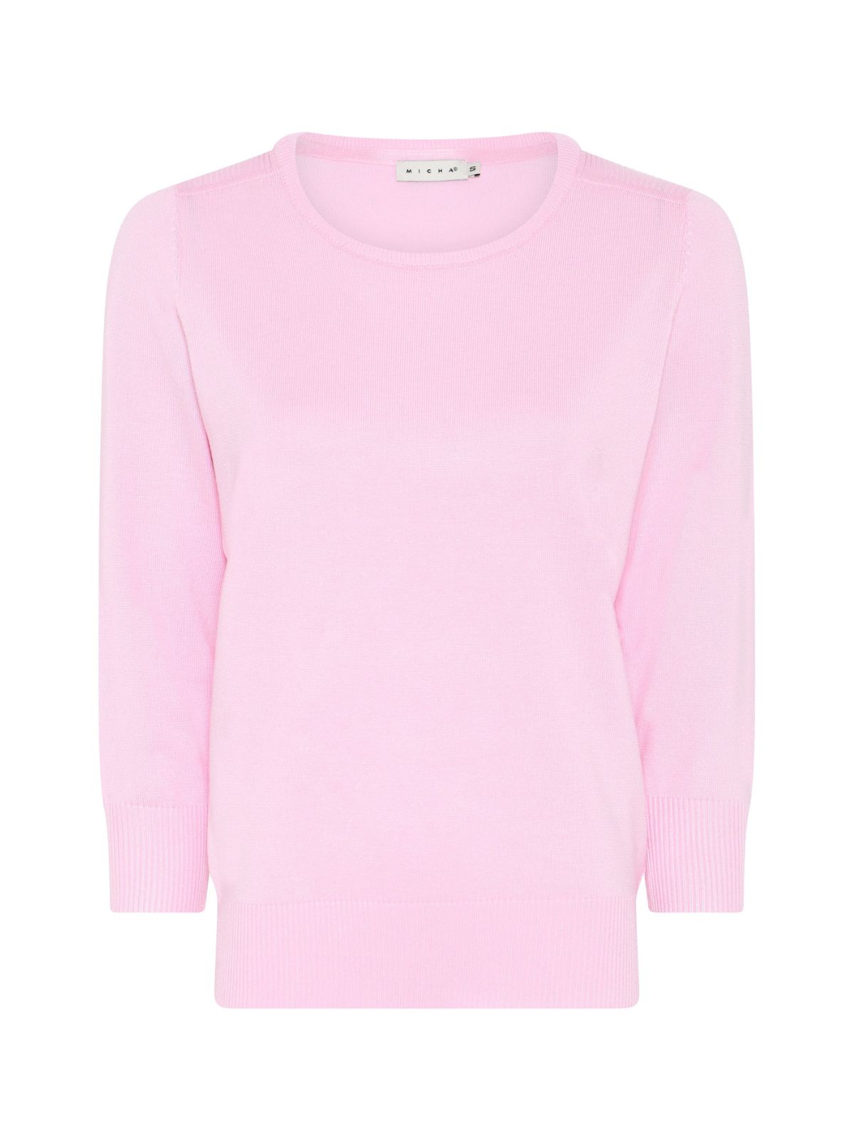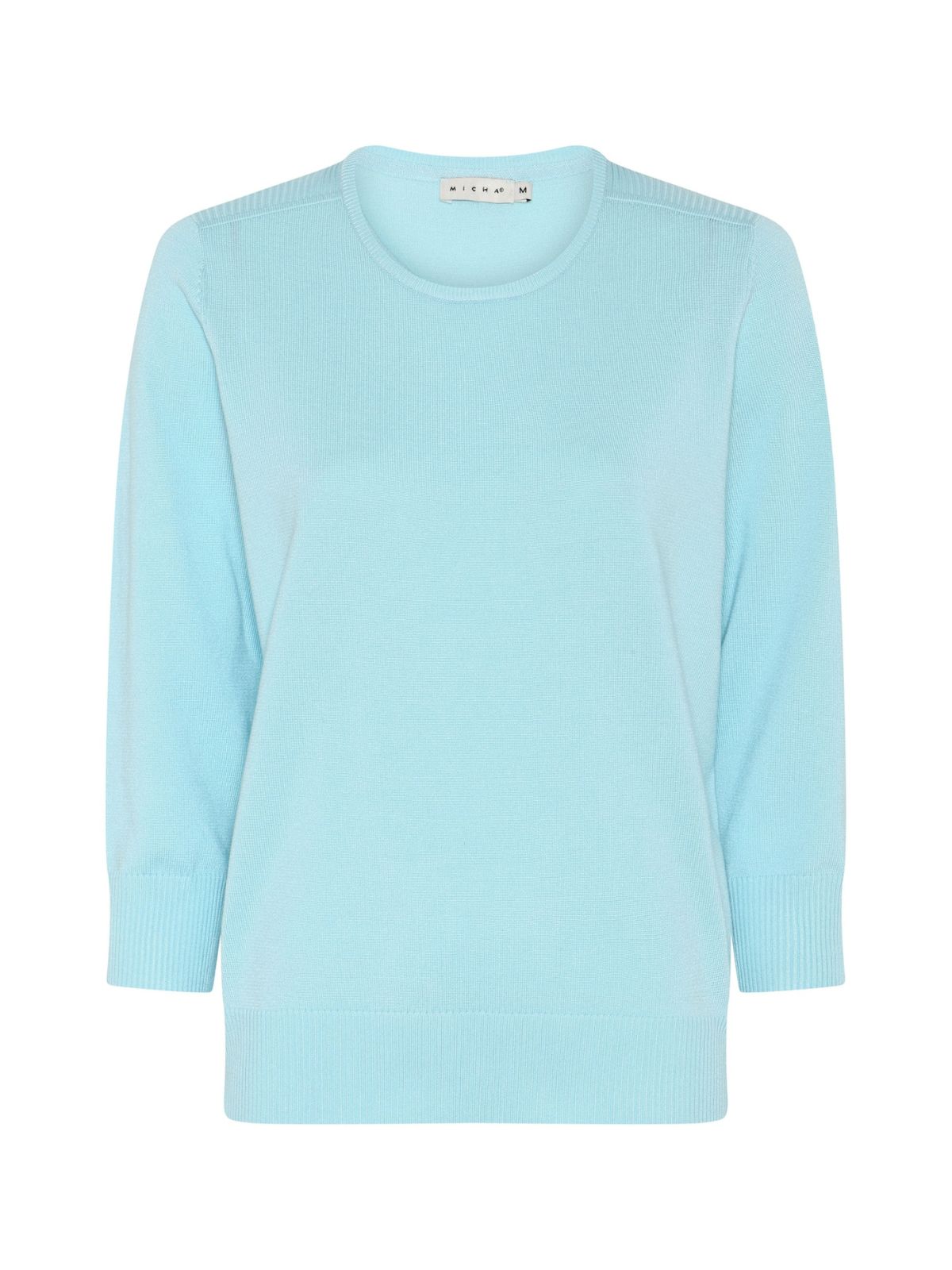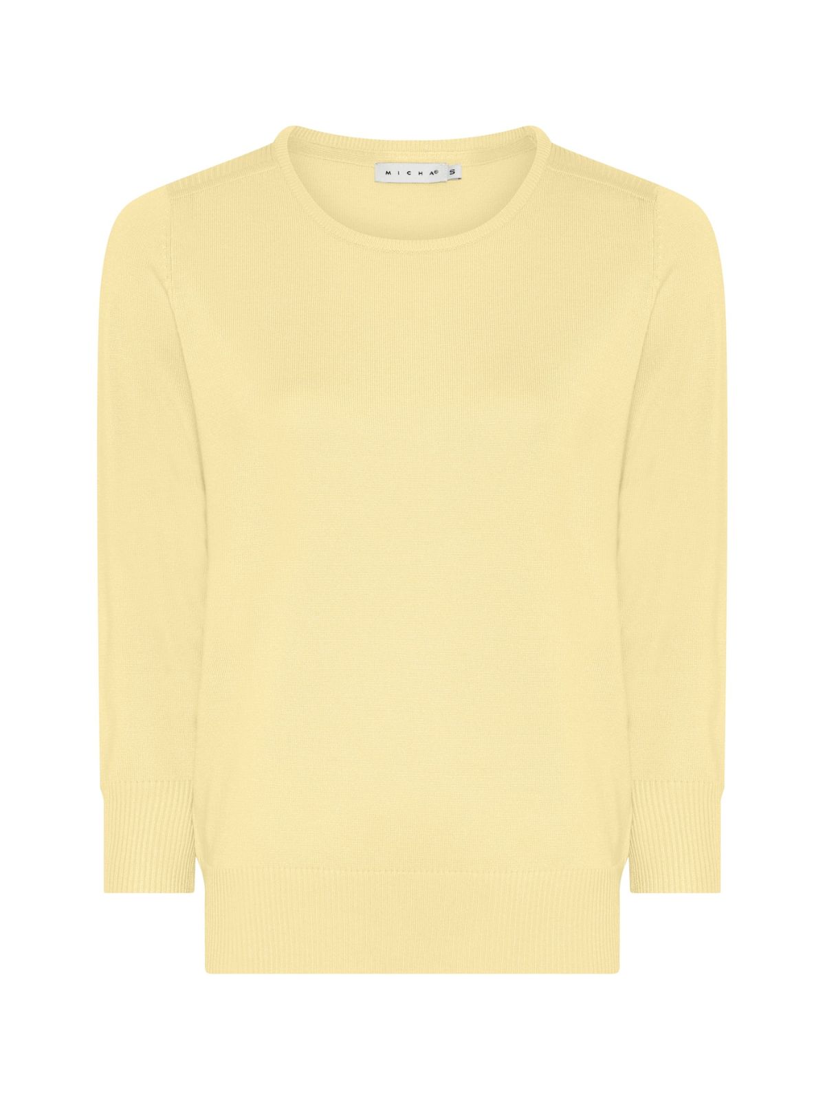 Klassisk crew neck strik fra MICHA med rund hals og lange ærmer med bred ribkant ligeså nederste kant.Længde: ca. 60 cm