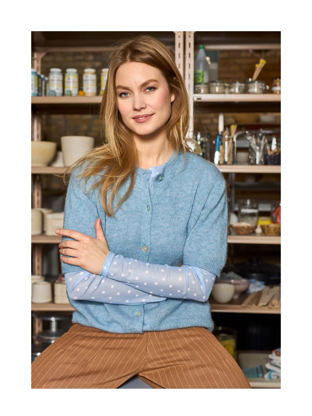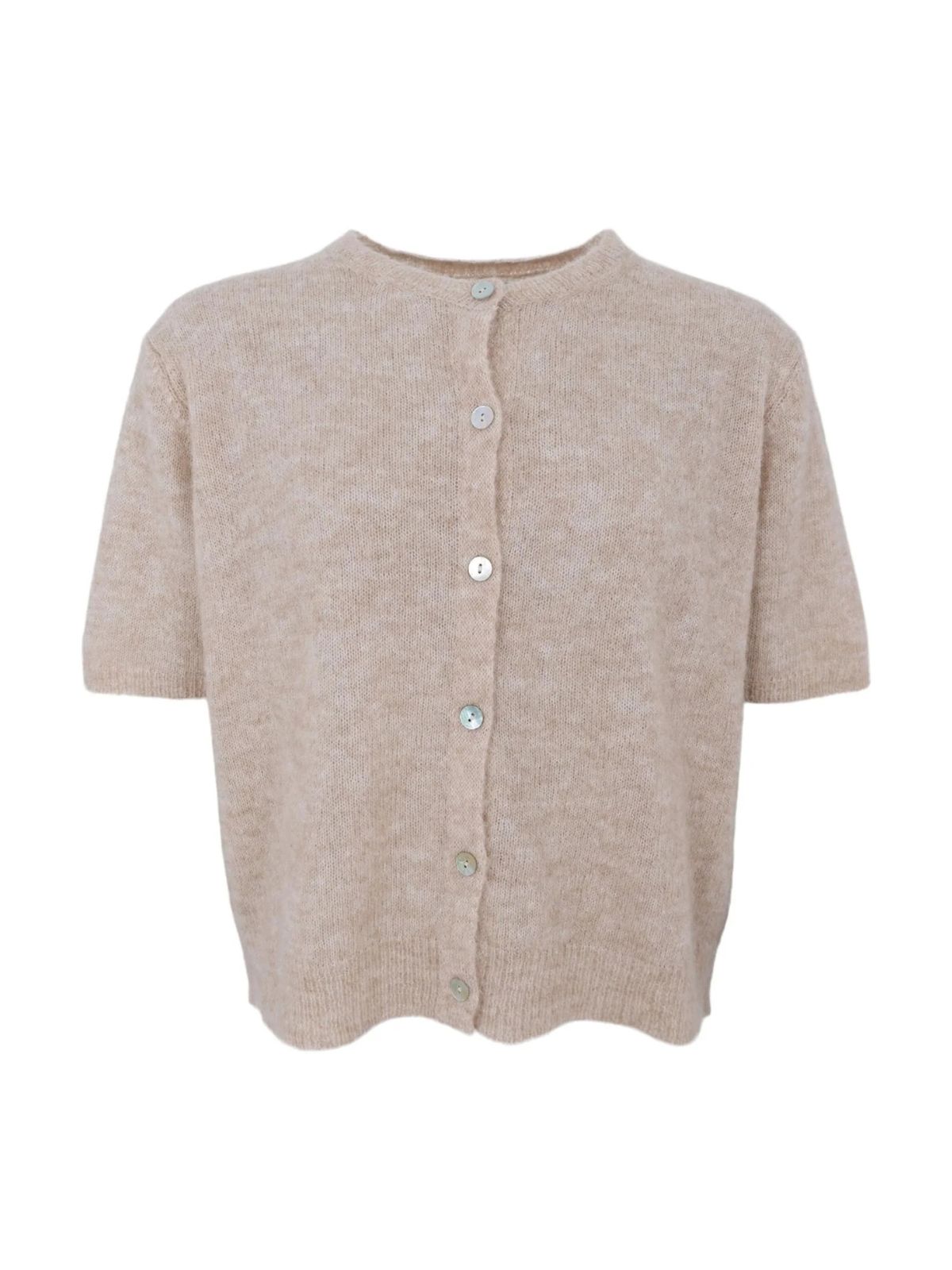 Den nye kortærmede Dell cardigan bygger videre på vores populære Dell-strik og kombinerer klassisk design med tidløs elegance. Cardiganen er strikket i en blød og let kvalitet, der føles behagelig mod huden, og har rund hals samt korte ærmer. Den lukkes foran med små knapper, hvilket fremhæver det enkle og sofistikerede udtryk. Brug den lukket som en top eller åben over en kjole, skjorte eller bluse for et fleksibelt og stilfuldt look.